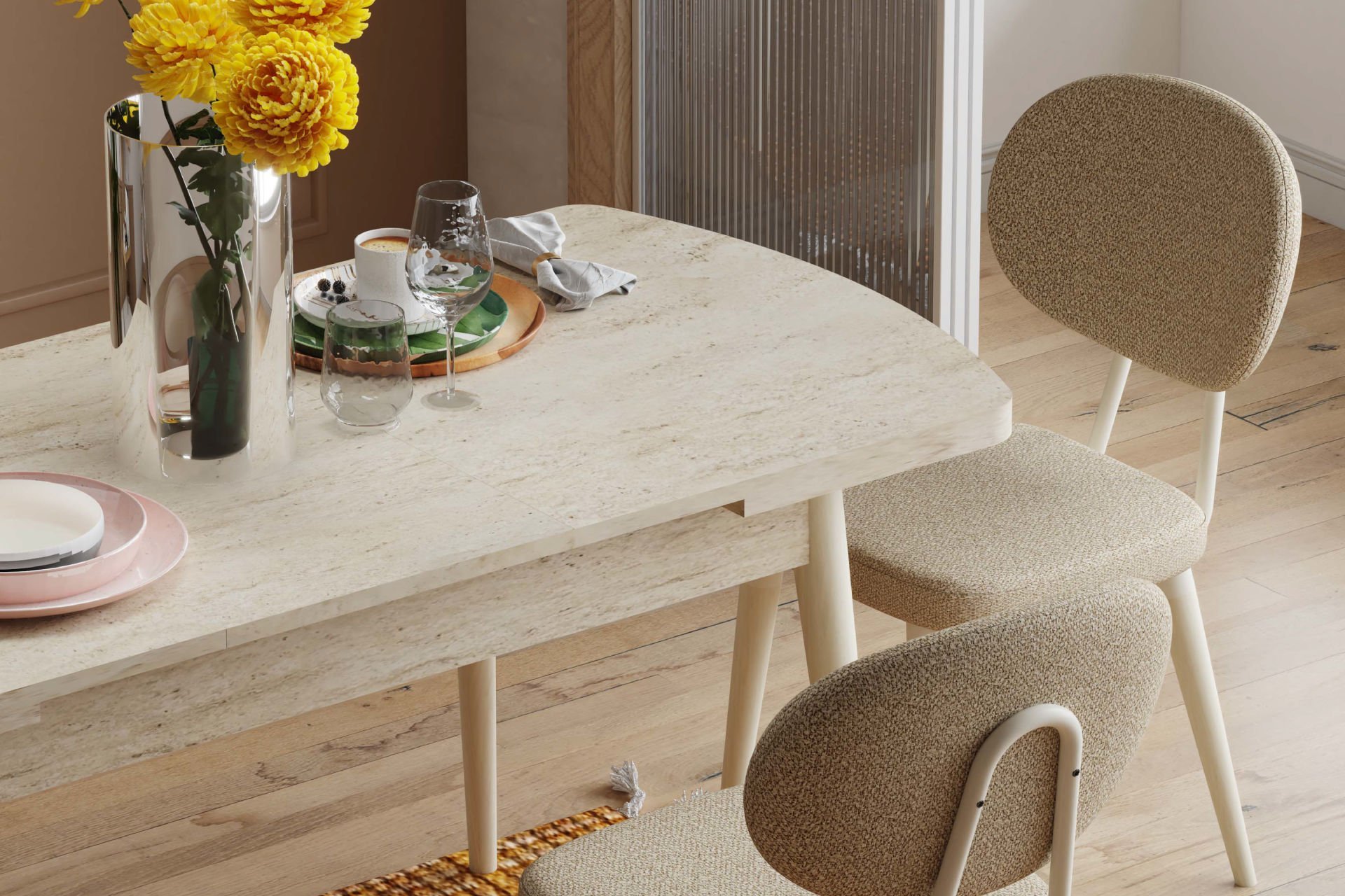 Akdeniz Sandalye Golf Mutfak Masası Takımı – 70×120 cm Teddy Bej – 4 Adet – Traverten