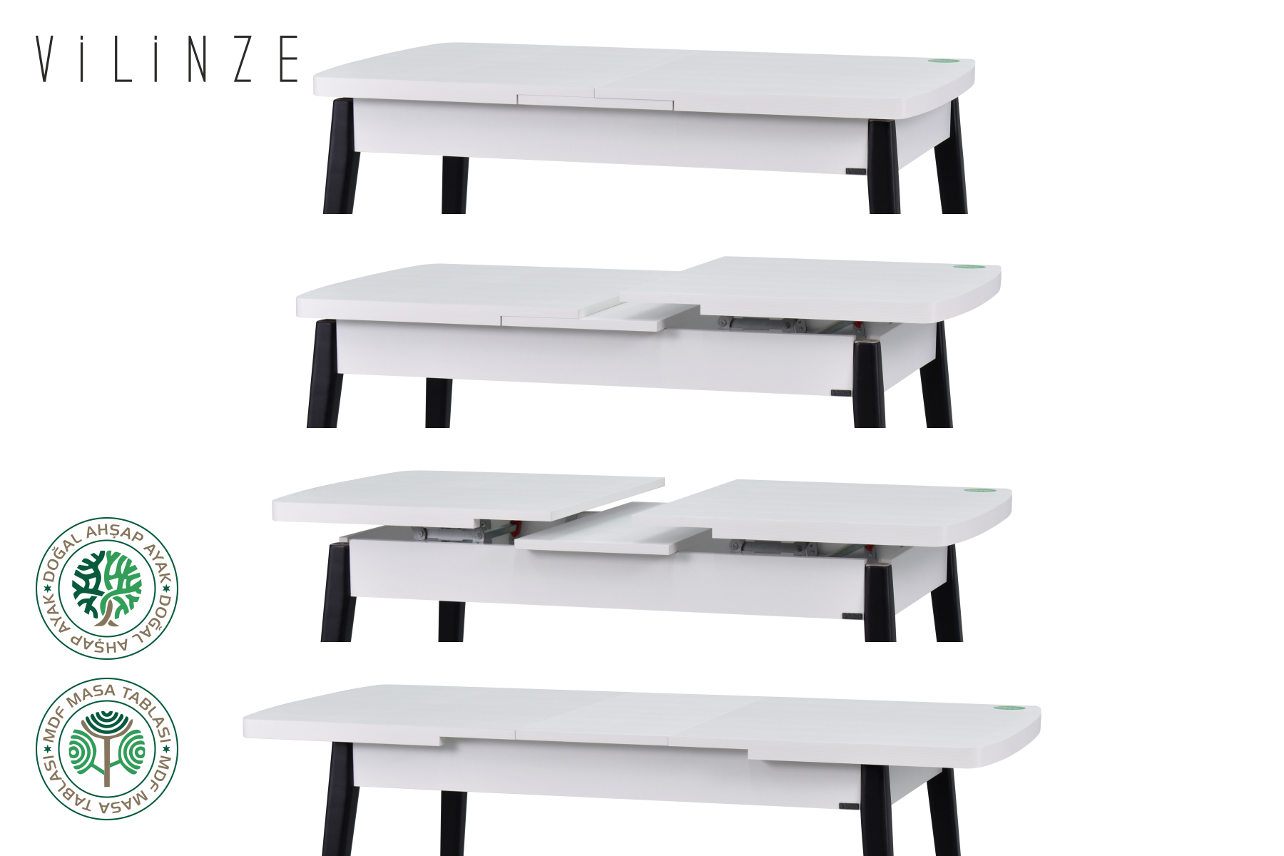 Avanos Ahşap Açılır Kapanır Mdf Mutfak Masası – 70×120+30 cm Beyaz – Siyah