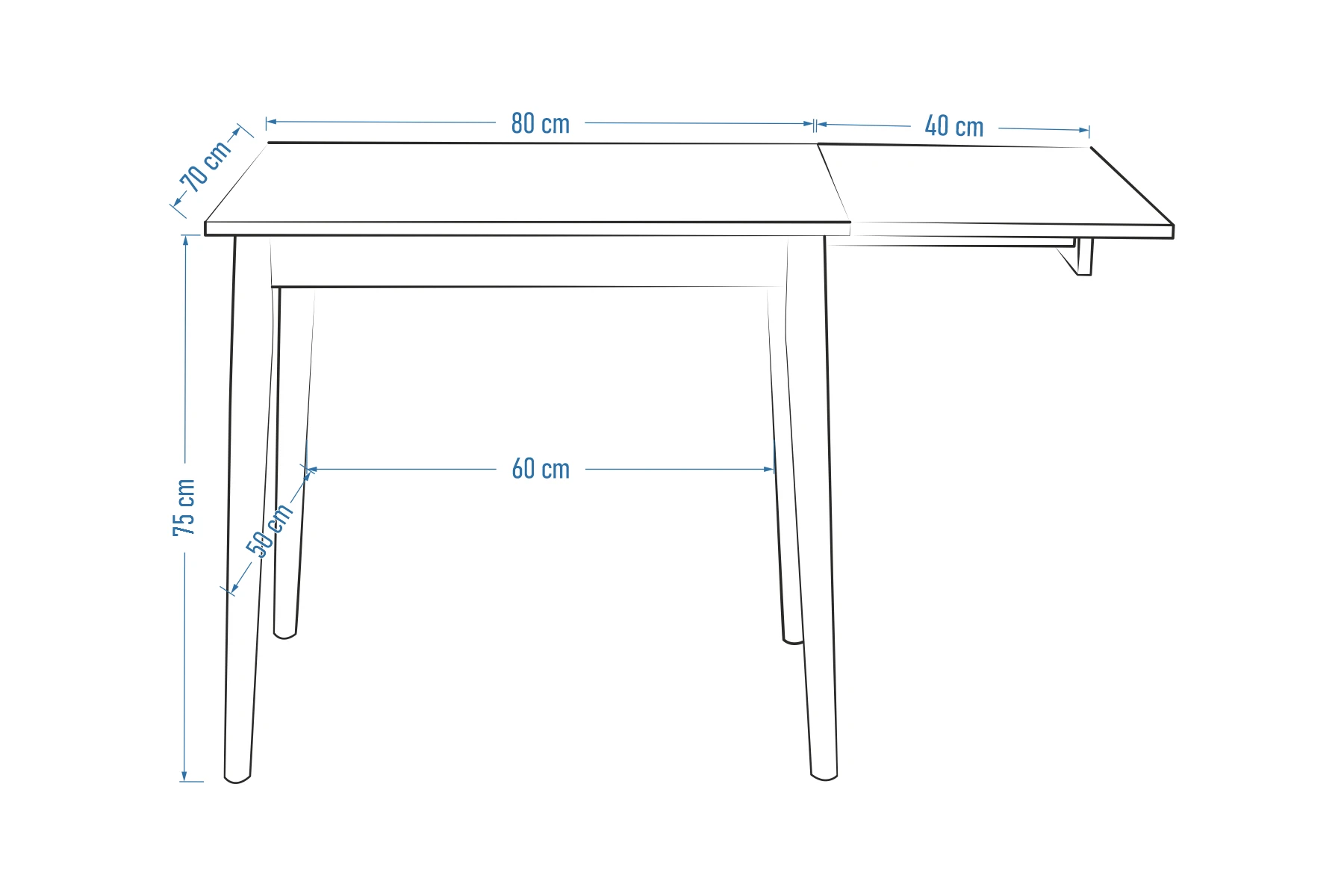 Avanos Katlanır Mdf Ahşap Mutfak Masası – 70×80 cm (70×120 cm) Beyaz – Naturel