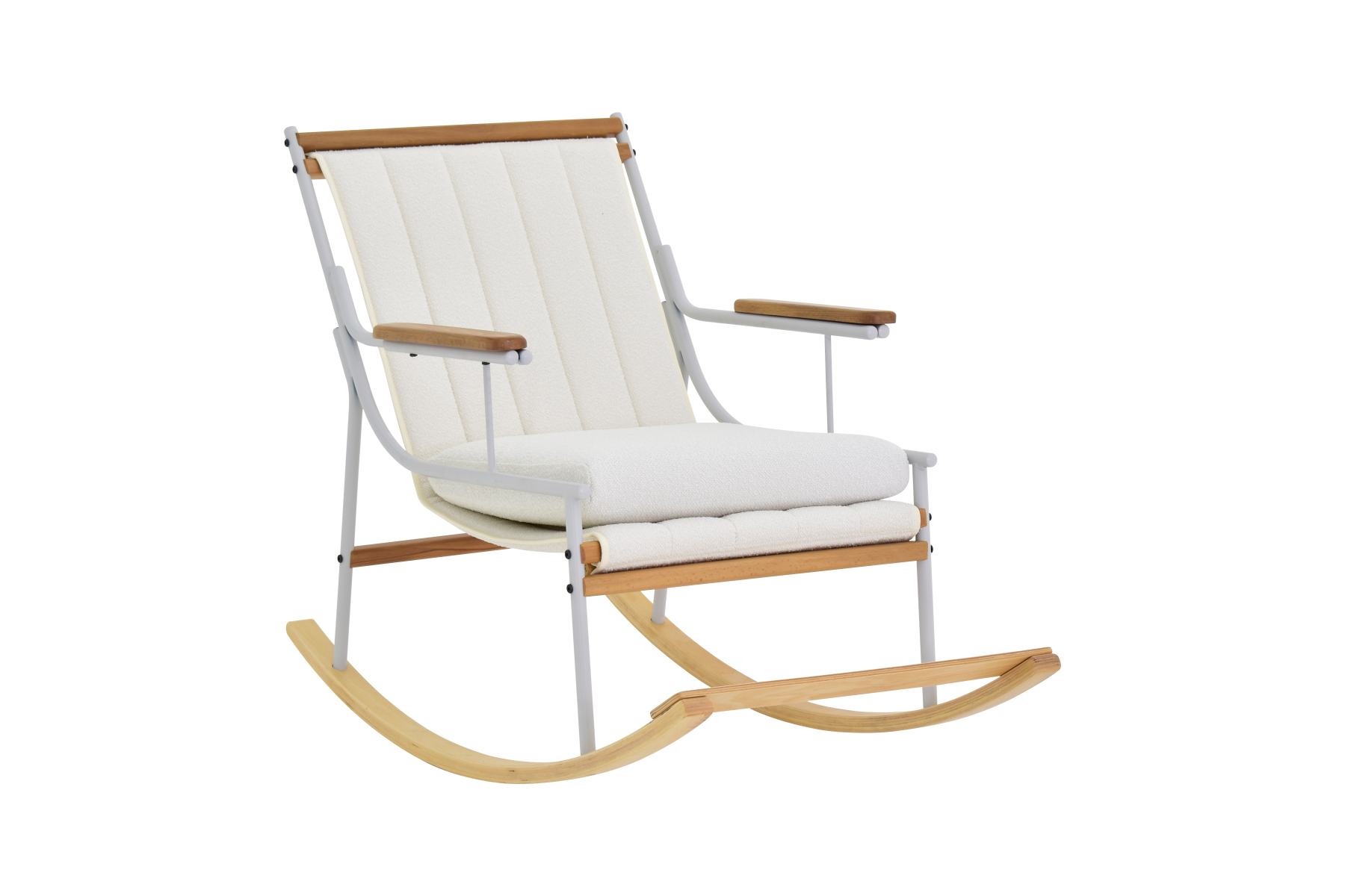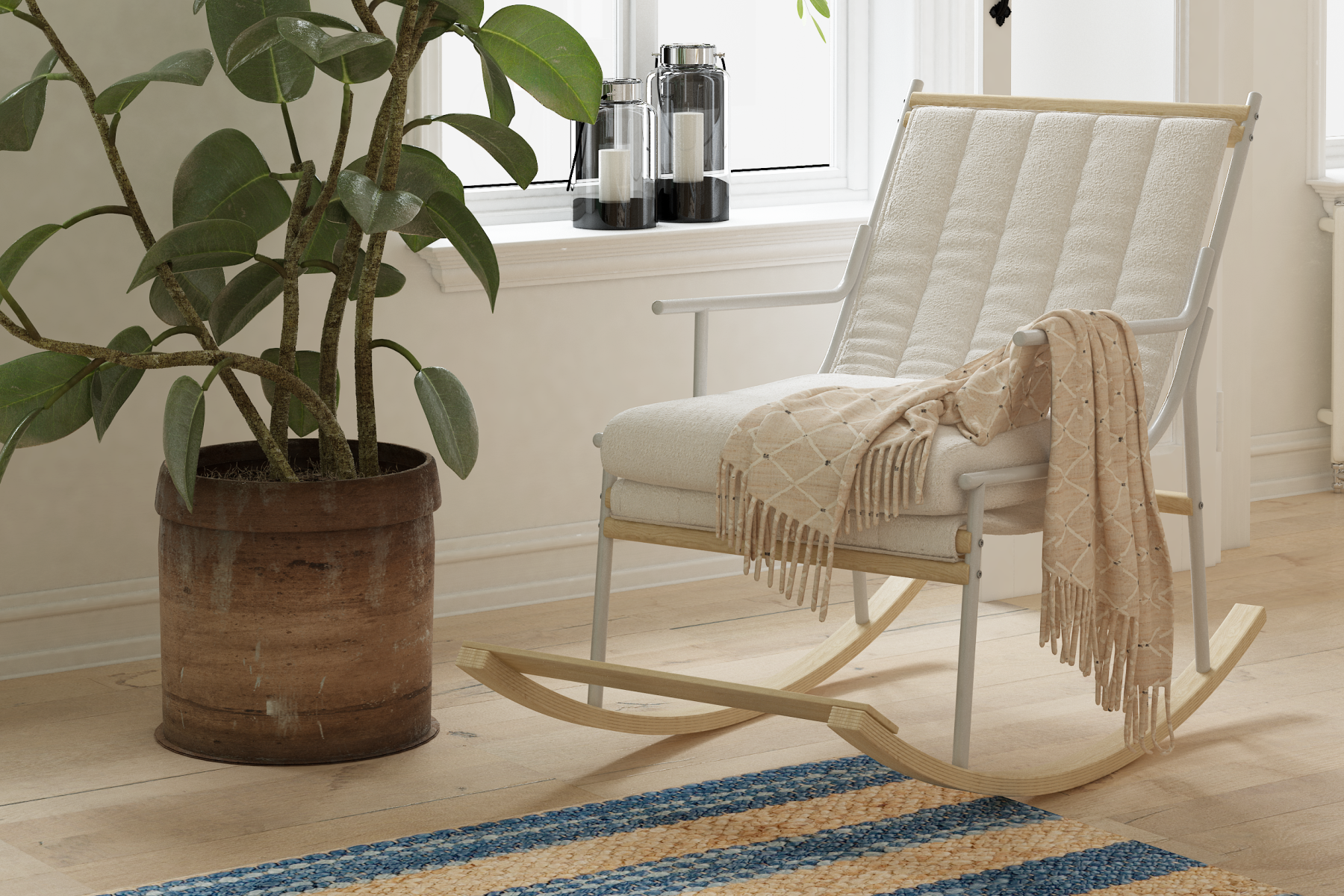 Bal Ahşap-Metal Beyaz Ayak Teddy Beyaz Sallanan Koltuk Tv Sandalyesi