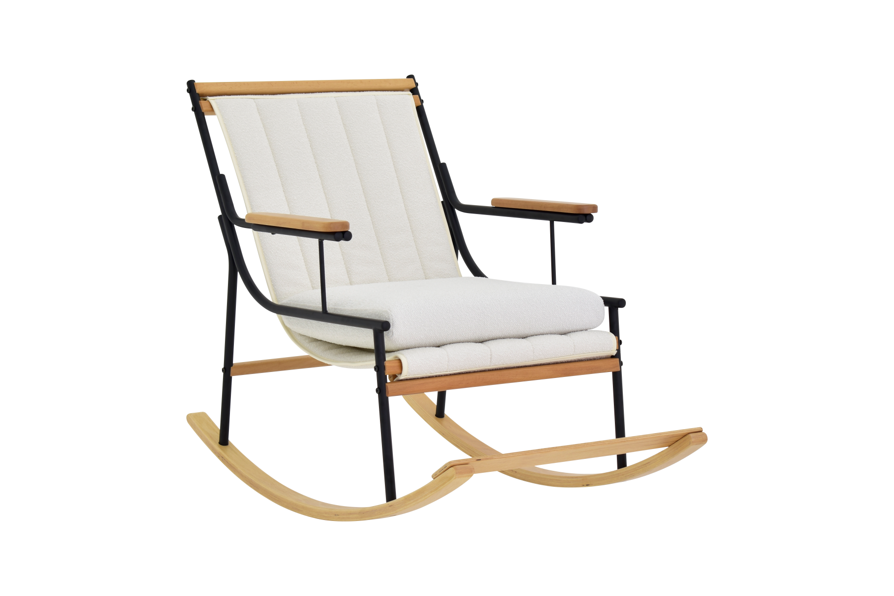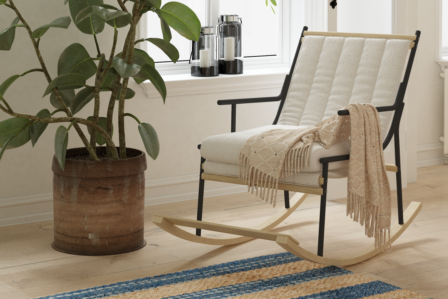 Bal Ahşap-Metal Siyah Ayak Teddy Beyaz Sallanan Koltuk Tv Sandalyesi