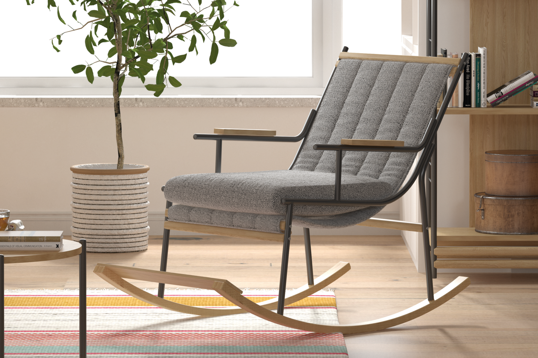 Bal Ahşap-Metal Siyah Ayak Teddy Gri Sallanan Koltuk Tv Sandalyesi