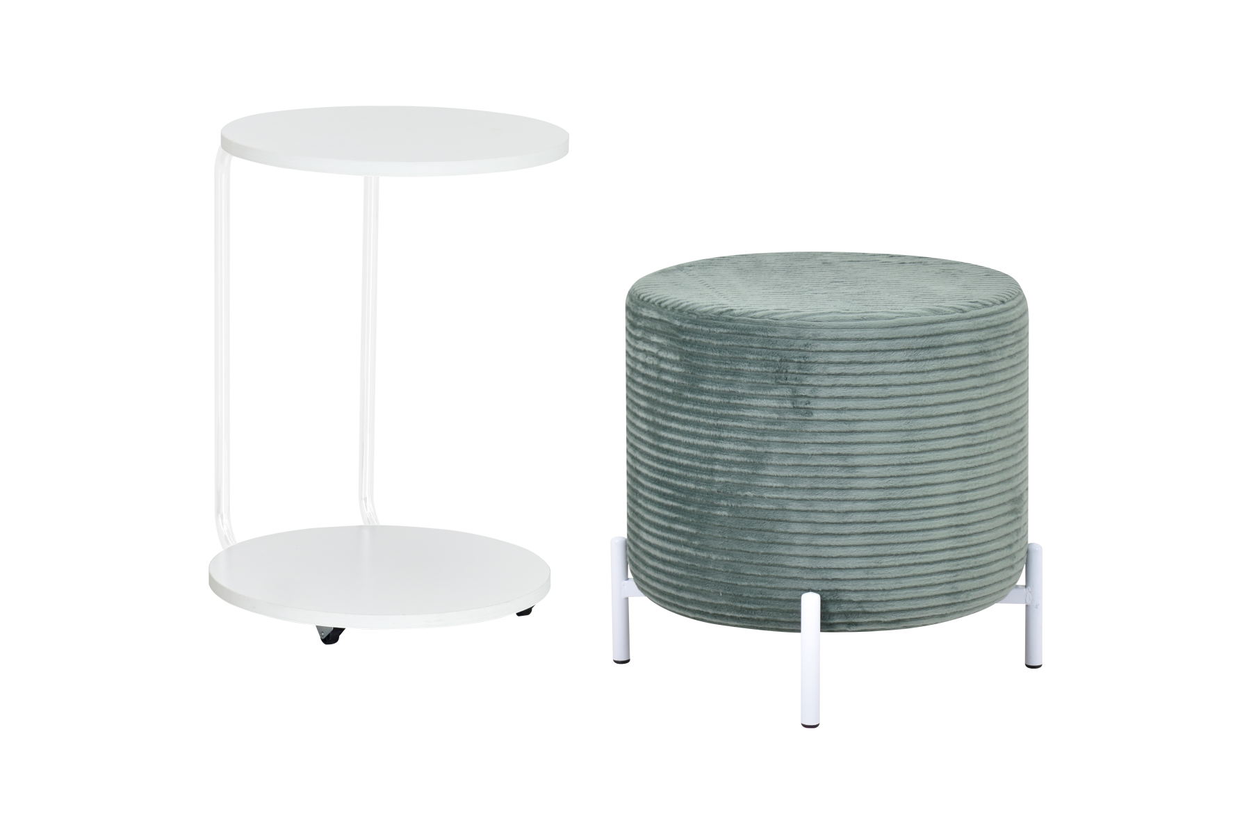 Çok Amaçlı Beyaz Metal Ayak C Sehpa Puf Seti Beyaz – Yeşil