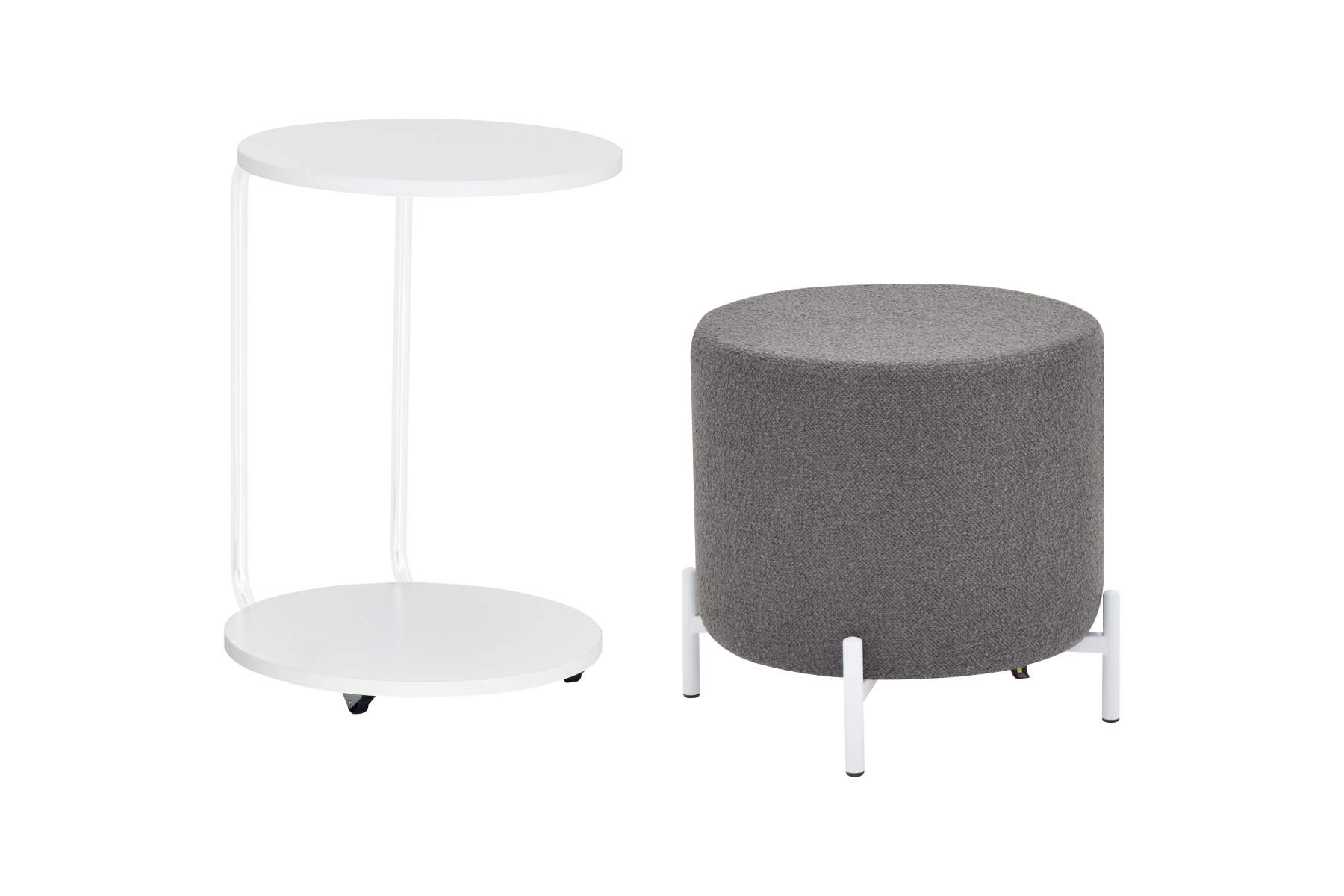 Çok Amaçlı Beyaz Metal Ayak C Sehpa Puf Seti Teddy Gri