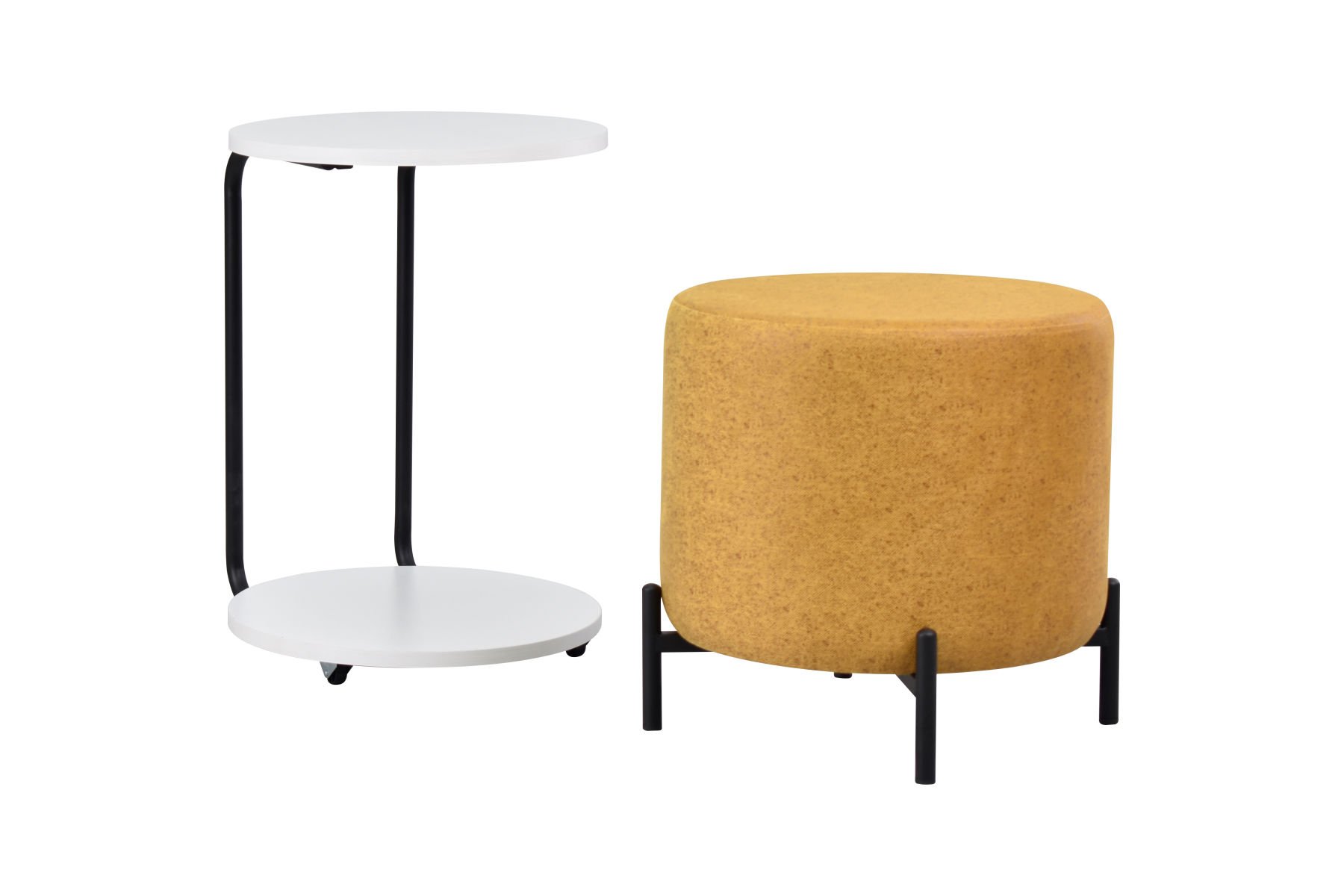 Çok Amaçlı Beyaz Metal C Sehpa Puf Seti Sarı