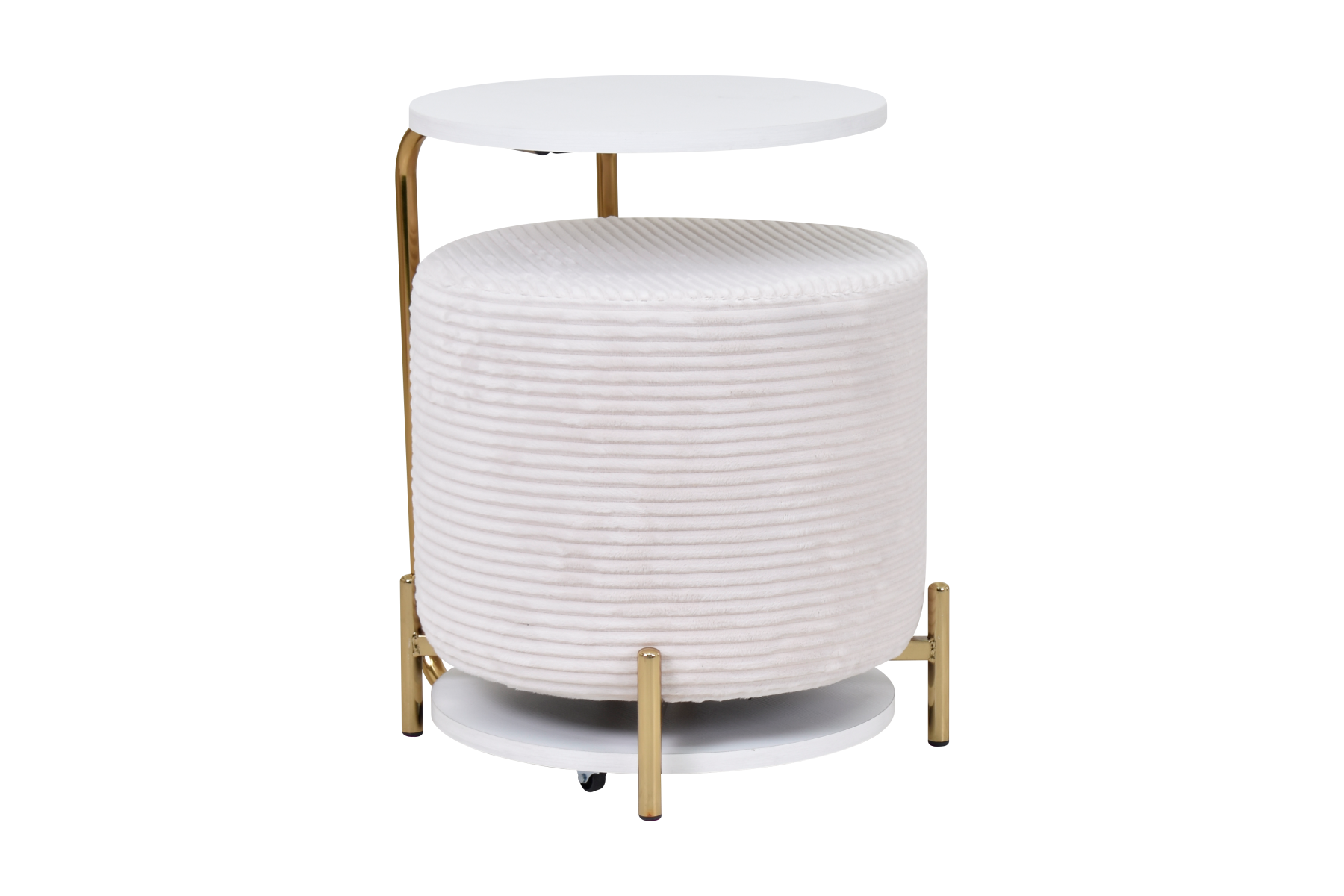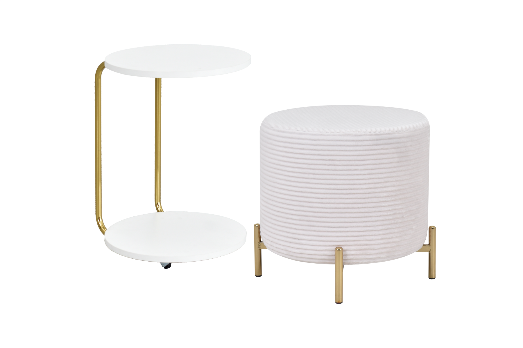 Çok Amaçlı Gold Metal Ayak C Sehpa Puf Seti Beyaz – Krem