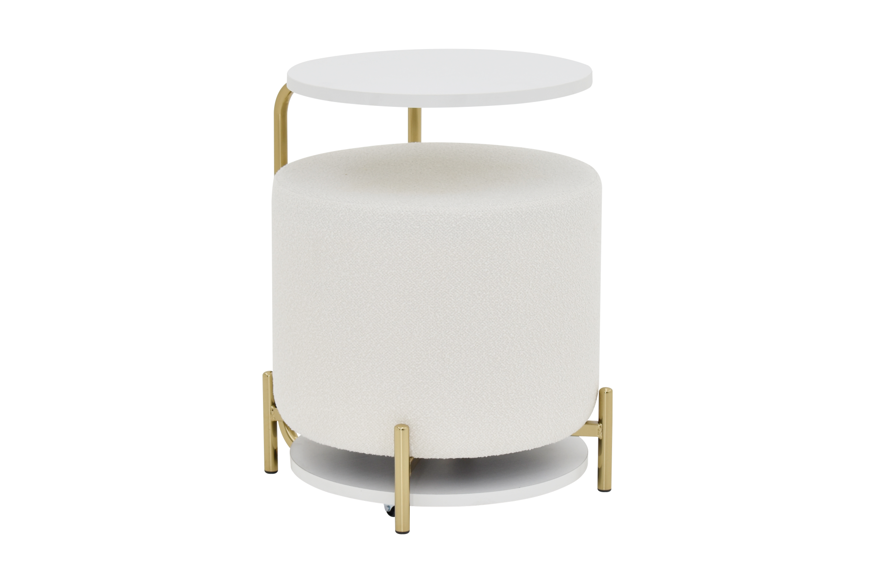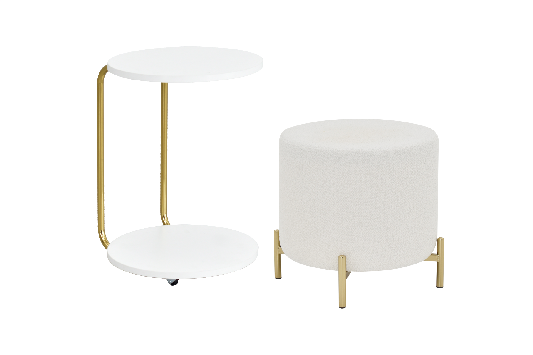 Çok Amaçlı Gold Metal Ayak C Sehpa Puf Seti Beyaz – Teddy Beyaz