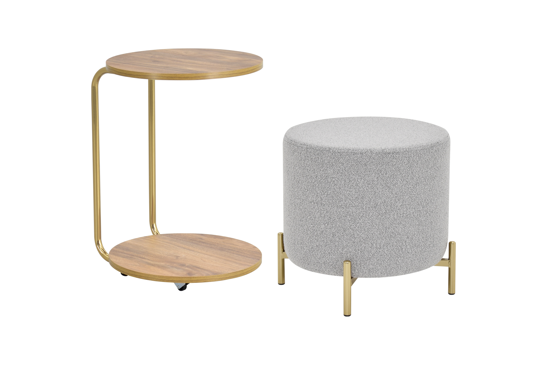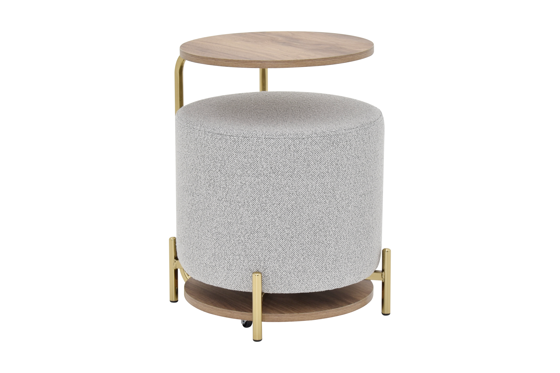 Çok Amaçlı Gold Metal Ayak C Sehpa Puf Seti Kestane – Teddy Açık Gri