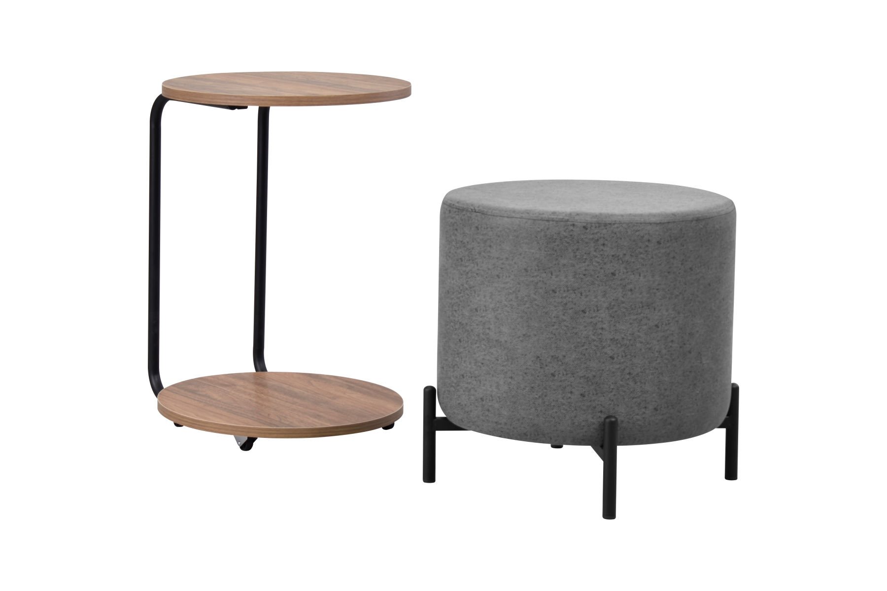 Çok Amaçlı Kestane Metal C Sehpa Puf Seti Gri