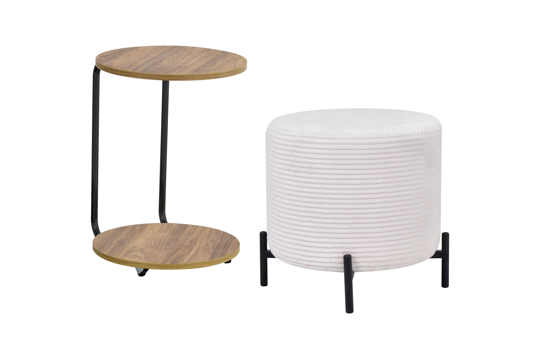 Çok Amaçlı Siyah Metal Ayak C Sehpa Puf Seti Krem – Kestane