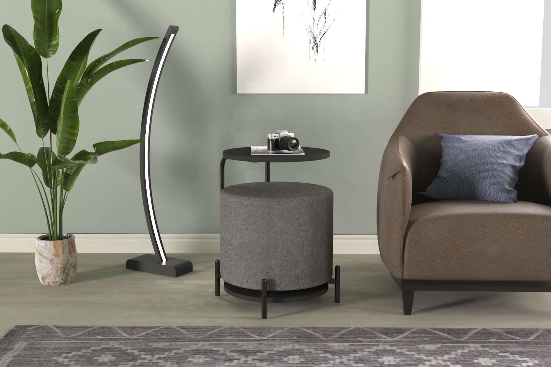 Çok Amaçlı Siyah Metal C Sehpa Puf Seti Gri
