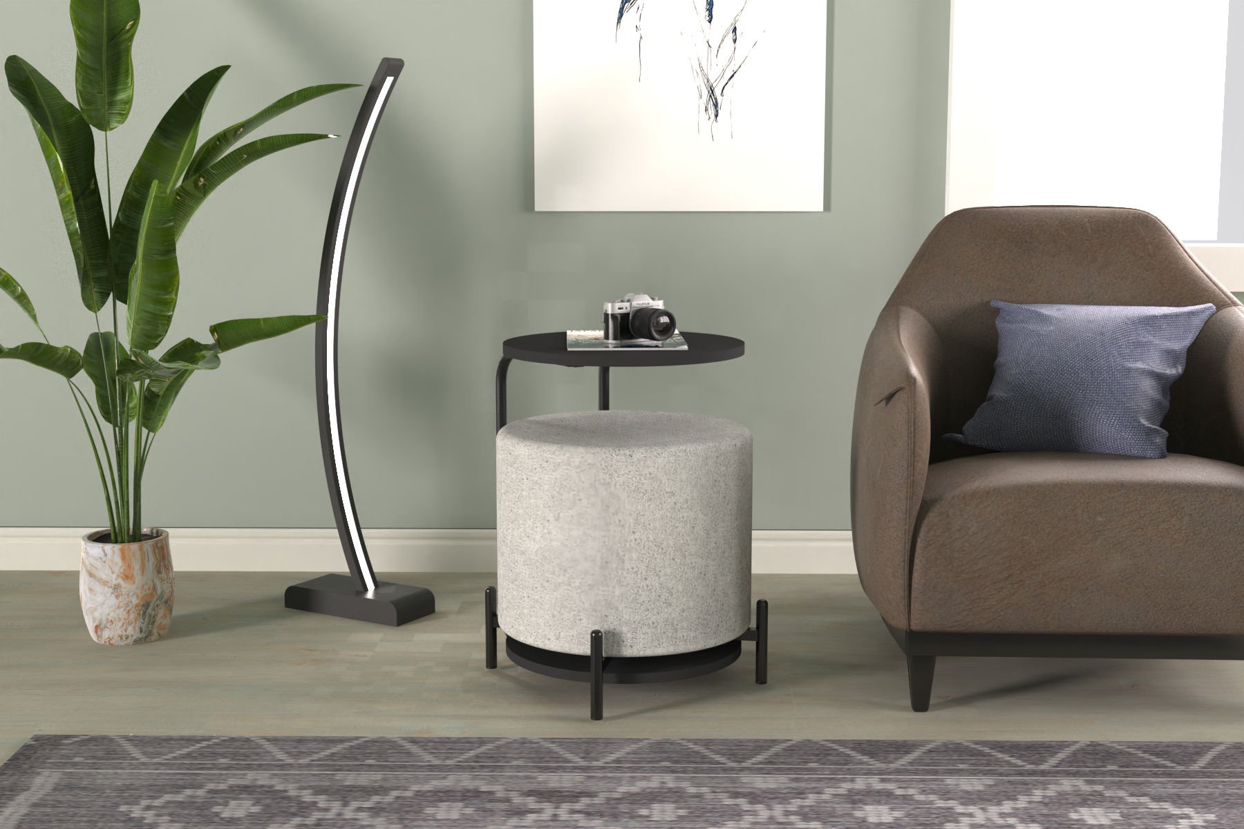 Çok Amaçlı Siyah Metal C Sehpa Puf Seti Krem