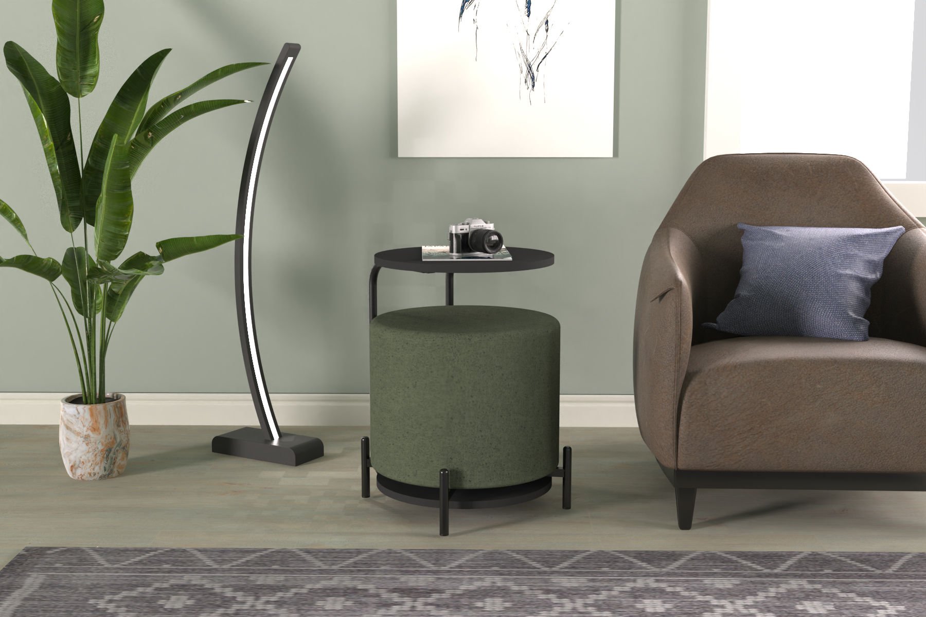 Çok Amaçlı Siyah Metal C Sehpa Puf Seti Yeşil