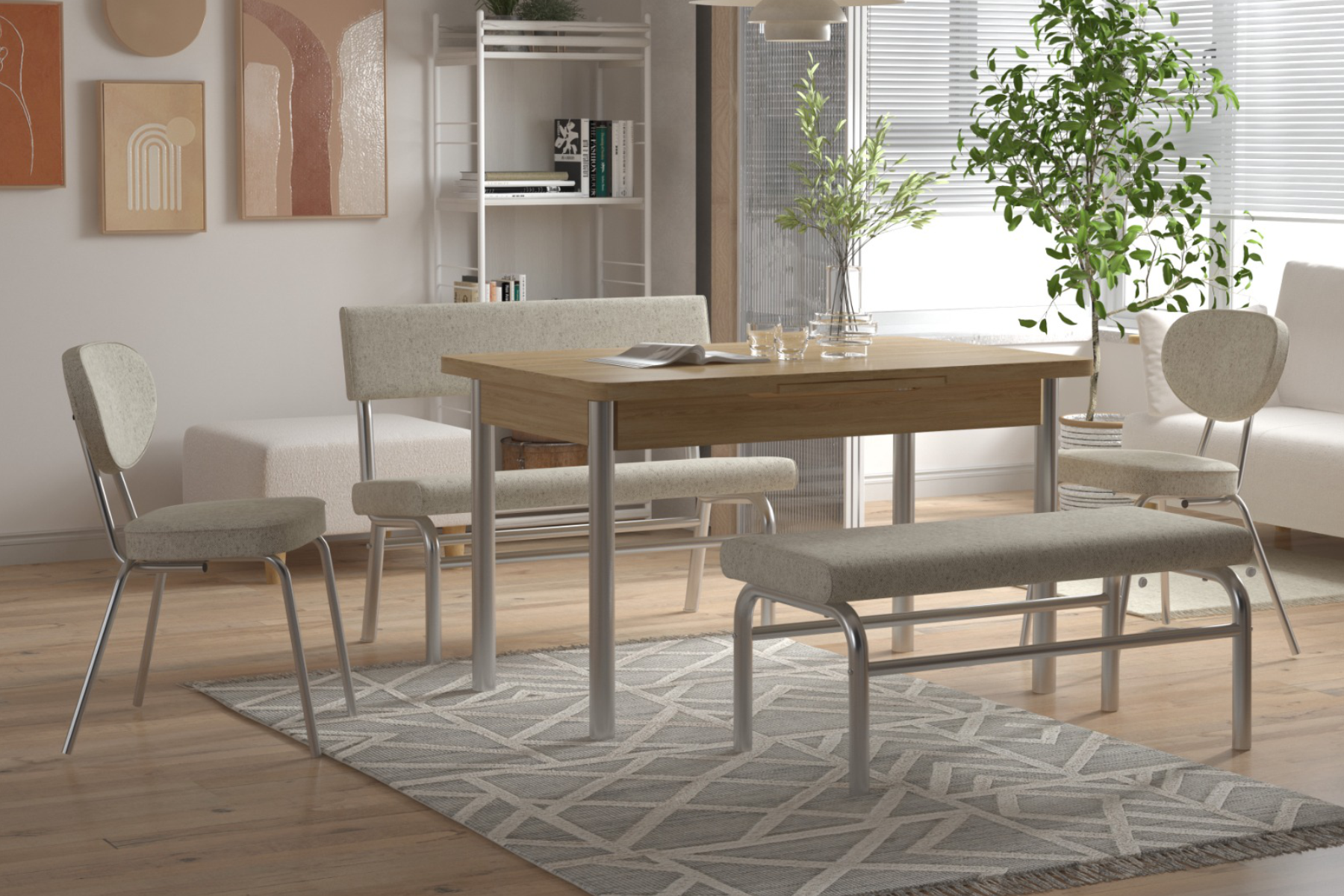 Damla Sandalye Peri Bank Ece Mutfak Masası Takımı – 80×120 cm Beyaz – Naturel