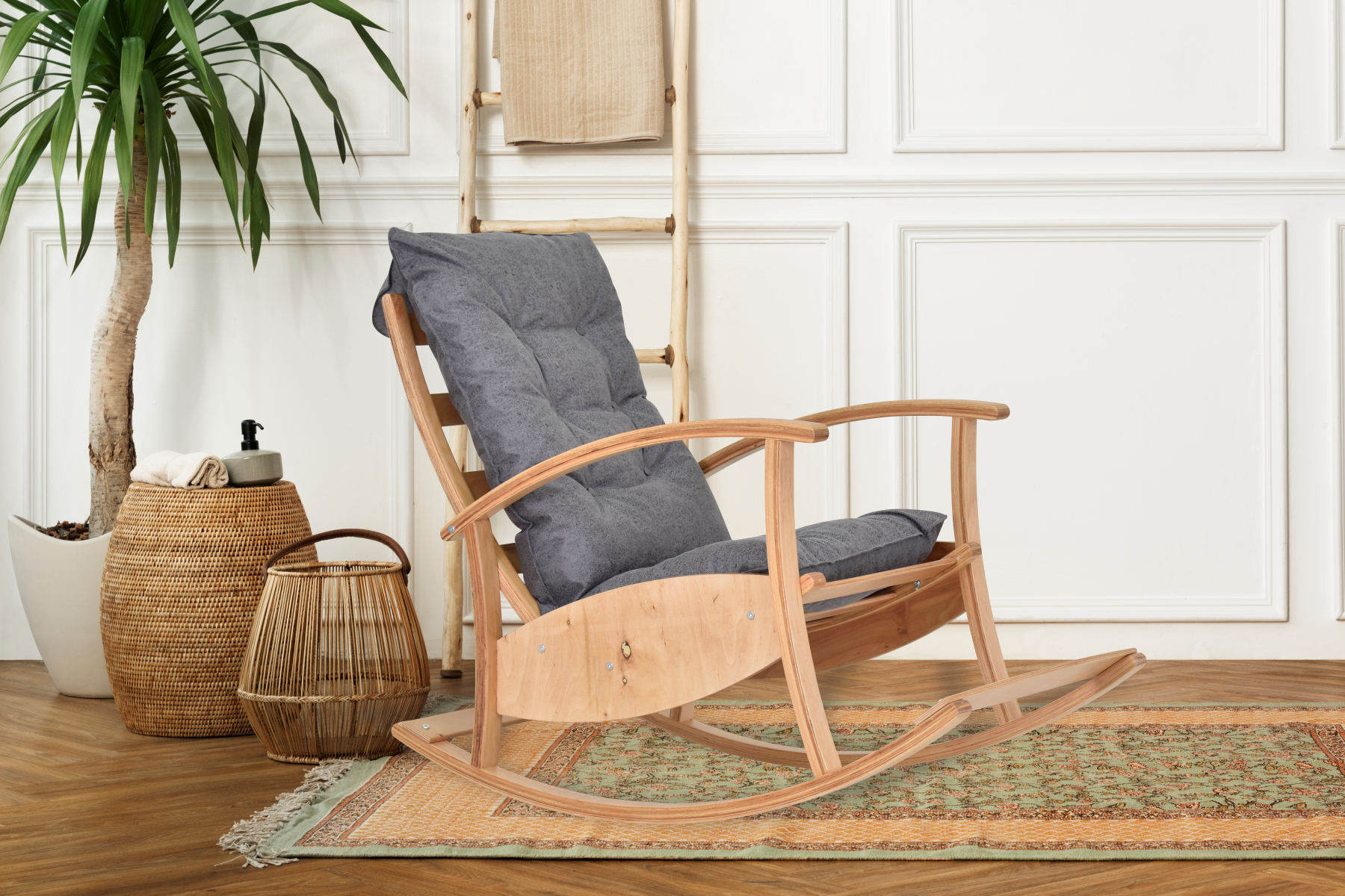 Dandini Naturel Ahşap Sallanan Koltuk Tv Sandalyesi Gri
