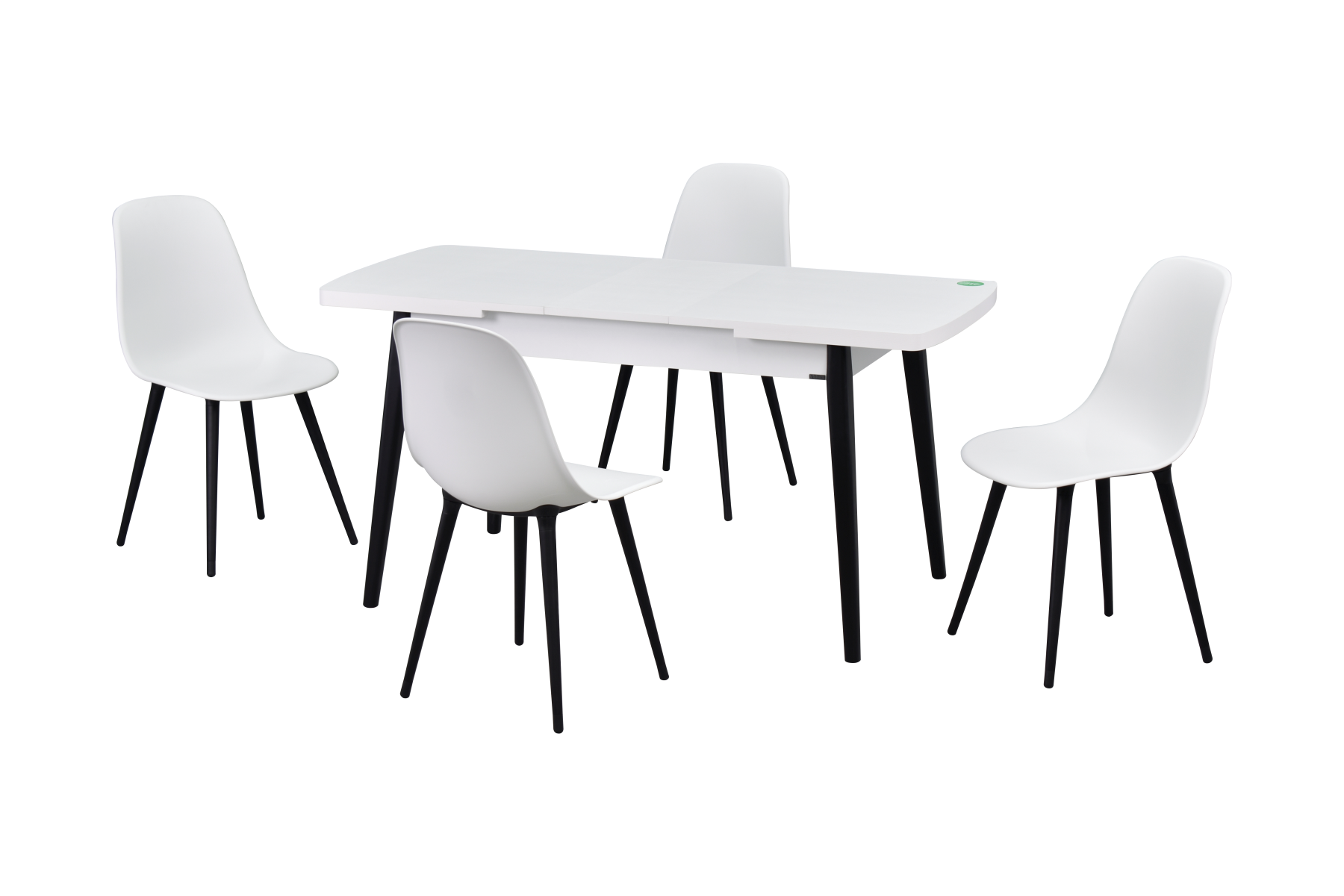 Eames Sandalye Avanos Ahşap Mutfak Masası Takımı – 70×120+30 cm Beyaz – Beyaz/Siyah