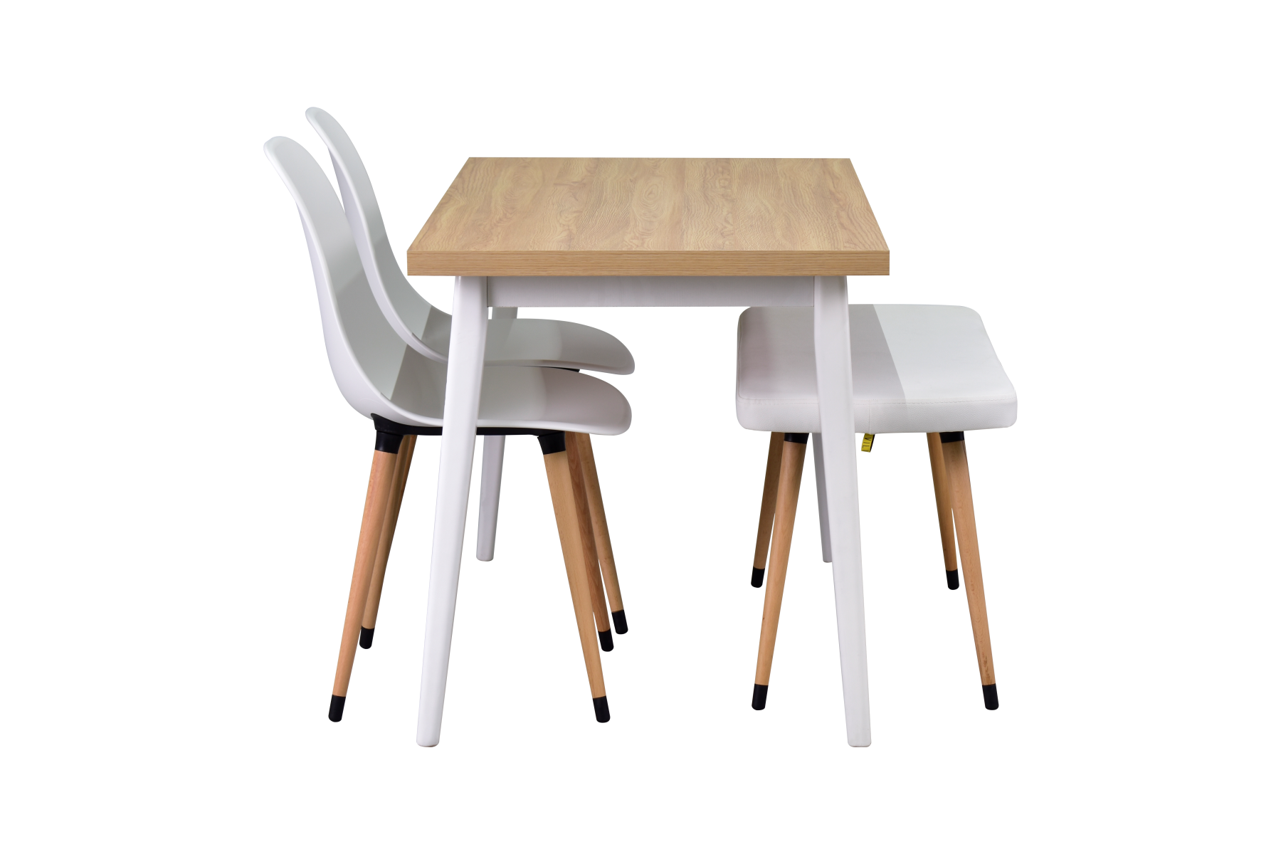 Eames Sandalye-Bank Avanos Ahşap Mdf Mutfak Masası Takımı – 70×120 Cm Beyez-Beyaz/Naturel