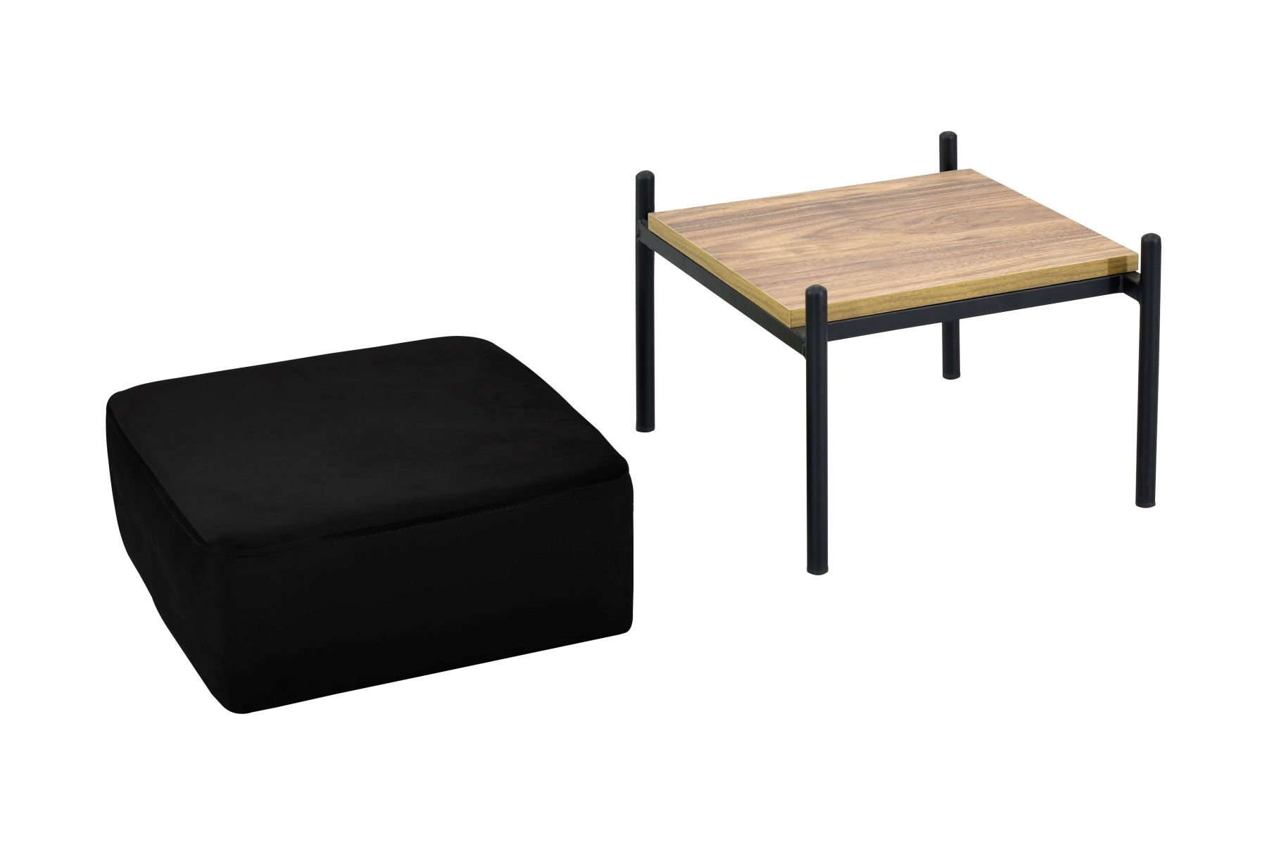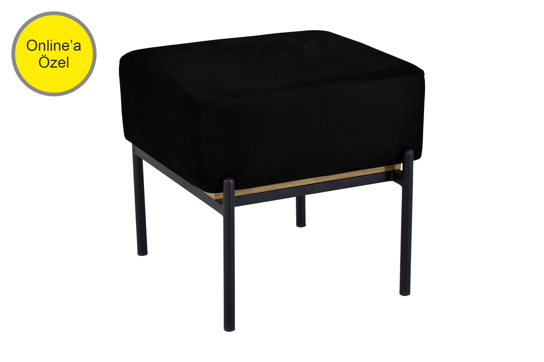 Ege Fonksiyonel Siyah Ayak Sehpalı Kare Siyah Puf Kestane