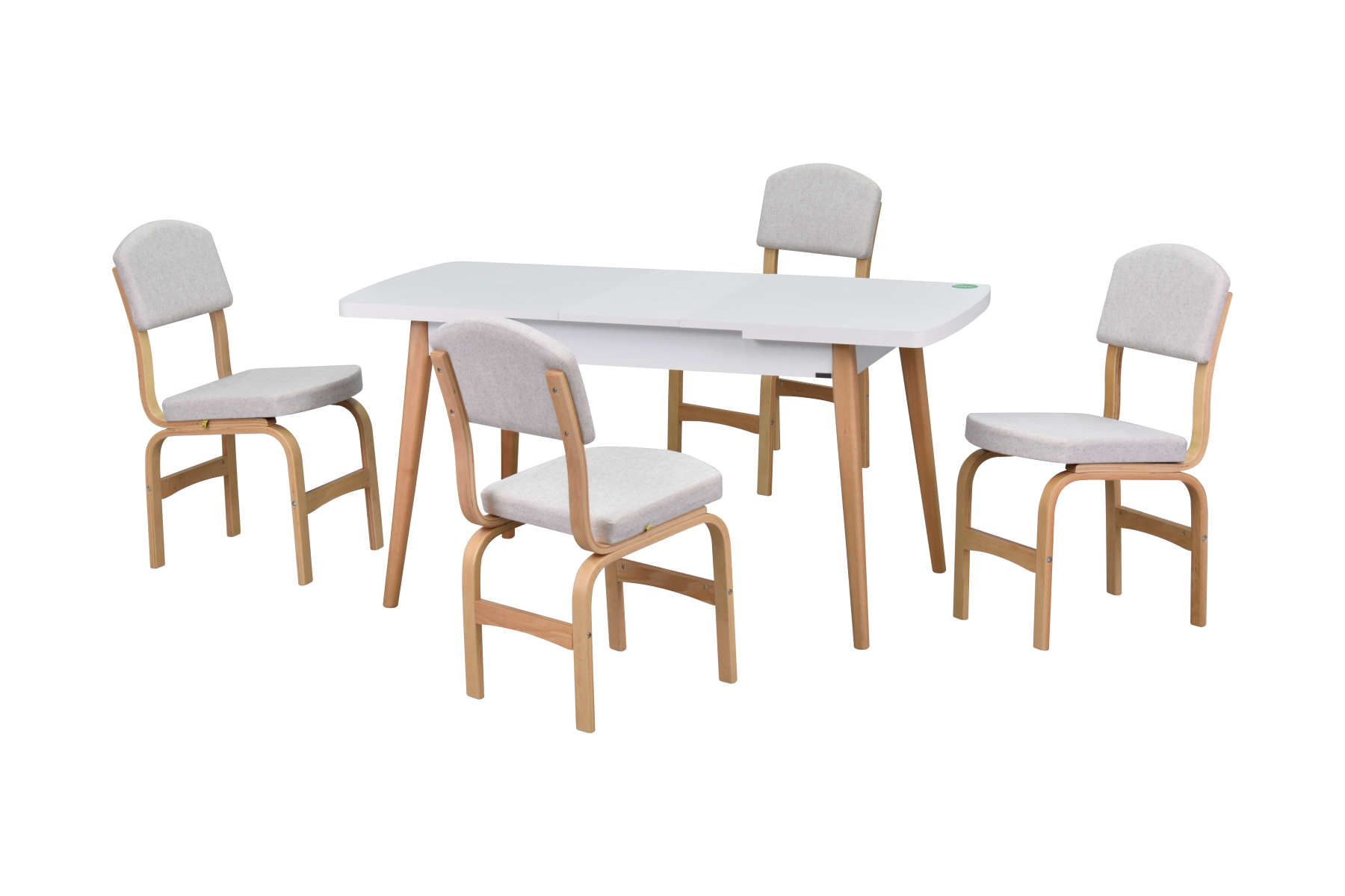 Ege Sandalye Avanos Ahşap Açılır Mutfak Masası Takımı – 70×120+30 cm Beyaz – Beyaz/Naturel