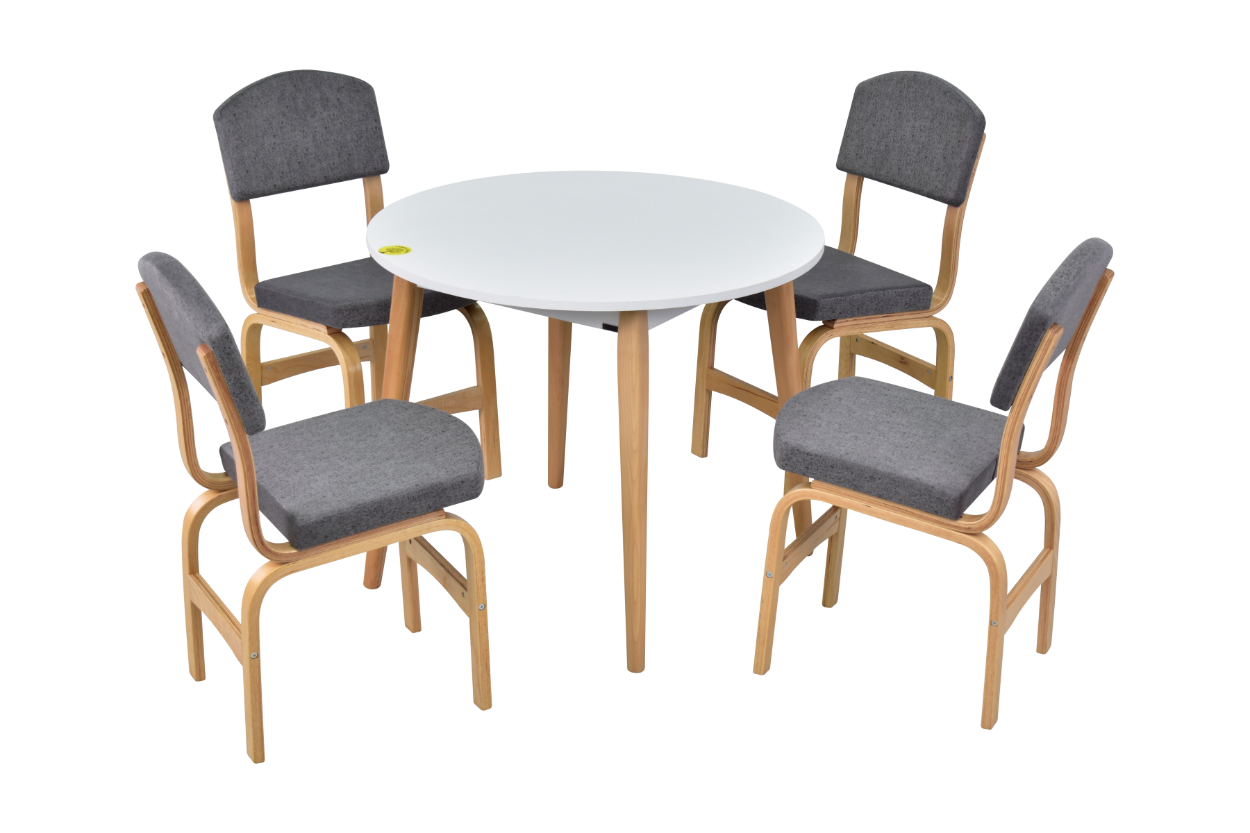 Ege Sandalye Avanos Yuvarlak Ahşap Mutfak Masası Takımı – 90×90 Cm Gri – Beyaz/Naturel