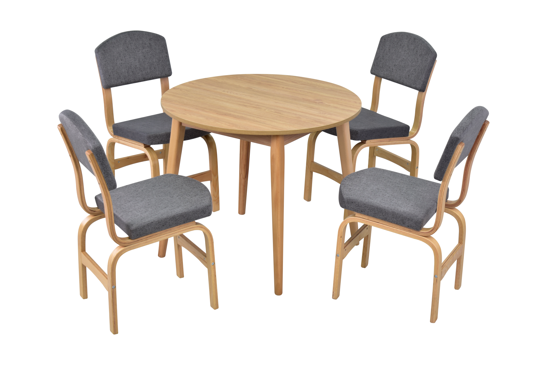Ege Sandalye Avanos Yuvarlak Ahşap Mutfak Masası Takımı – 90×90 Cm Gri – Naturel