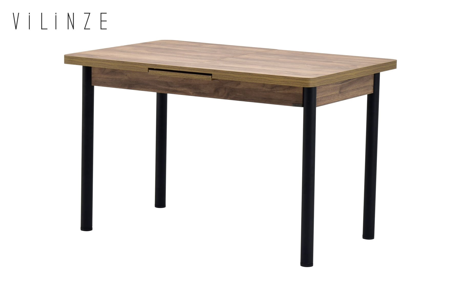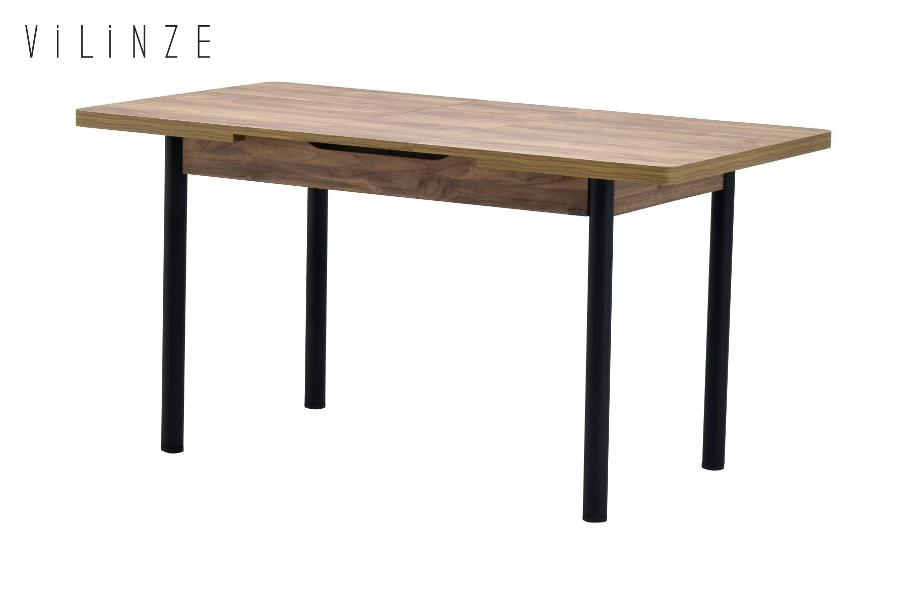 Elmas Metal Siyah Ayak Yemek Masası – 80×120 cm (80×150 cm) Kestane
