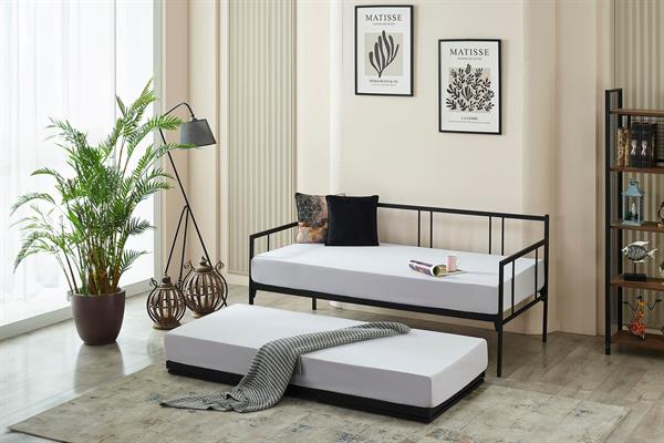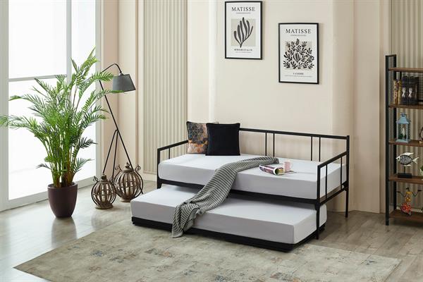 Forte Yavrulu Daybed-Çift Tek Kişilik Siyah Metal Karyola