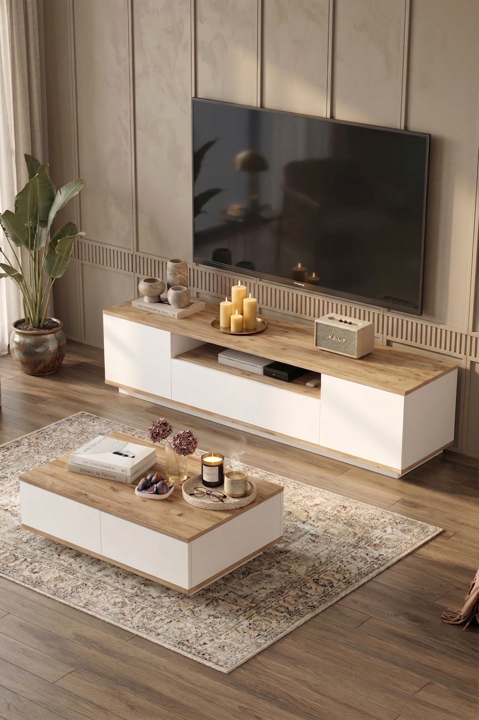 Future Tv Ünitesi Orta Sehpa 2’Li Set Çam-Beyaz