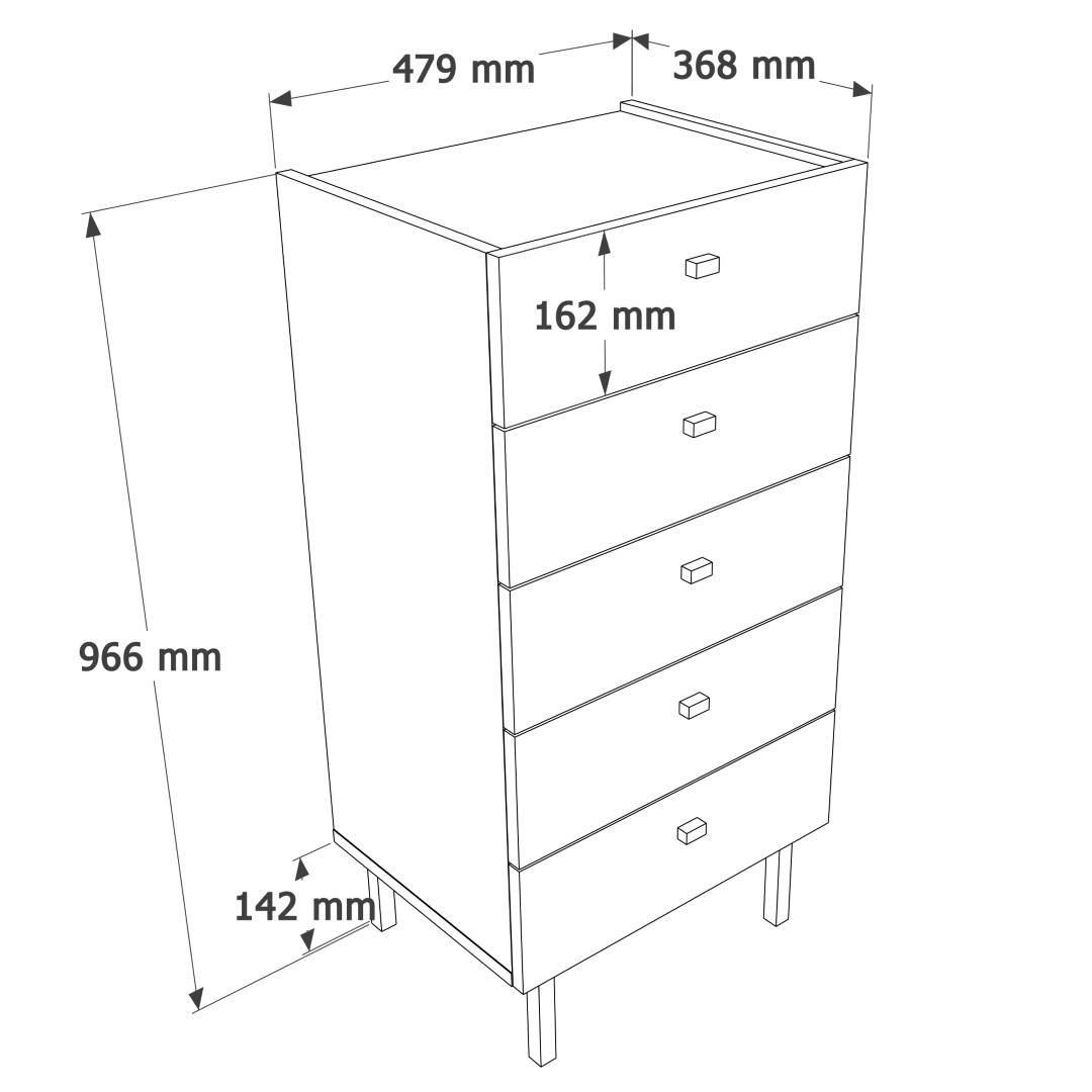 Luke Şifonyer 5 Çekmeceli Ahşap Ayaklı Kumsal-Sepet LK4-CS