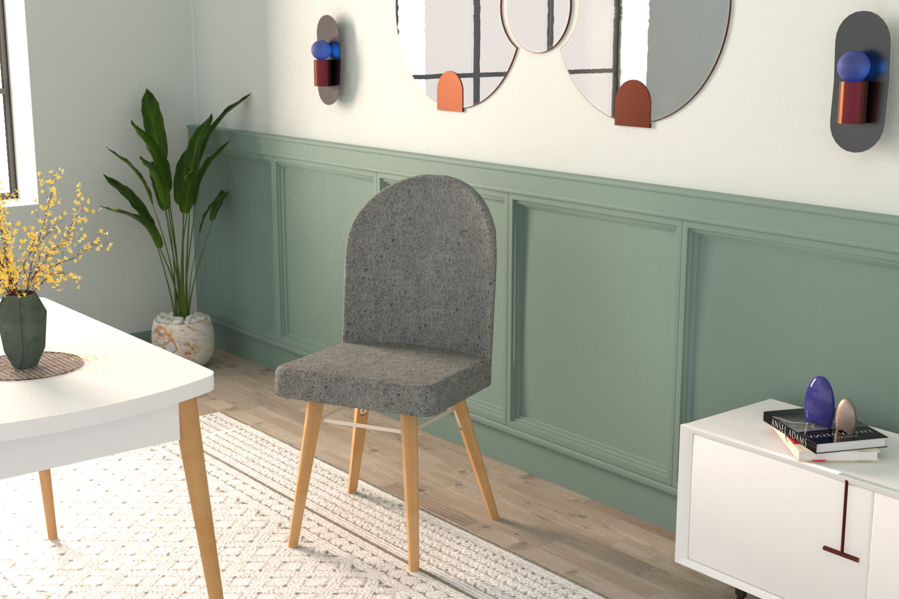 Mara Ahşap Ayak Sigma Sandalye Gri – Naturel