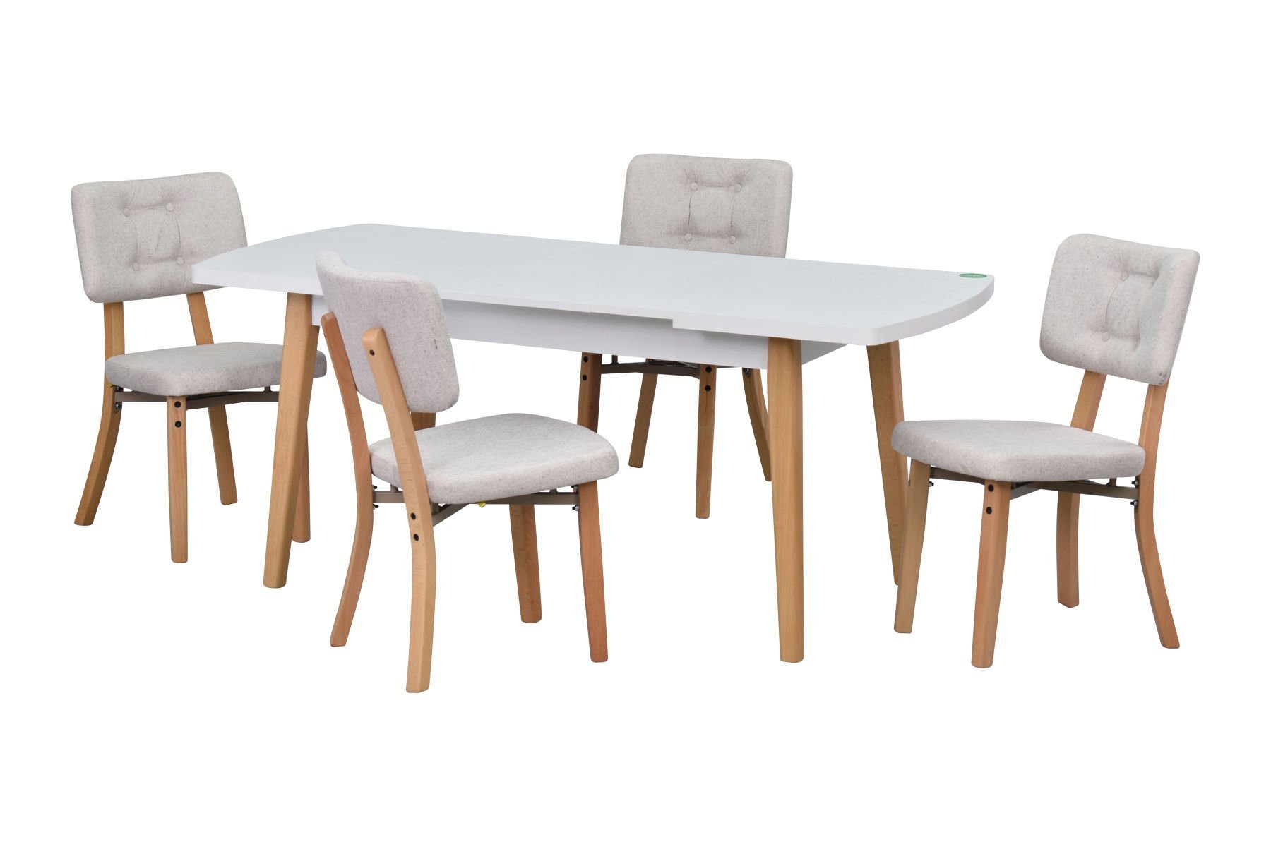 Mir Sandalye Aras Mutfak Masası Takımı – 80×140 cm Beyaz – Beyaz/Naturel