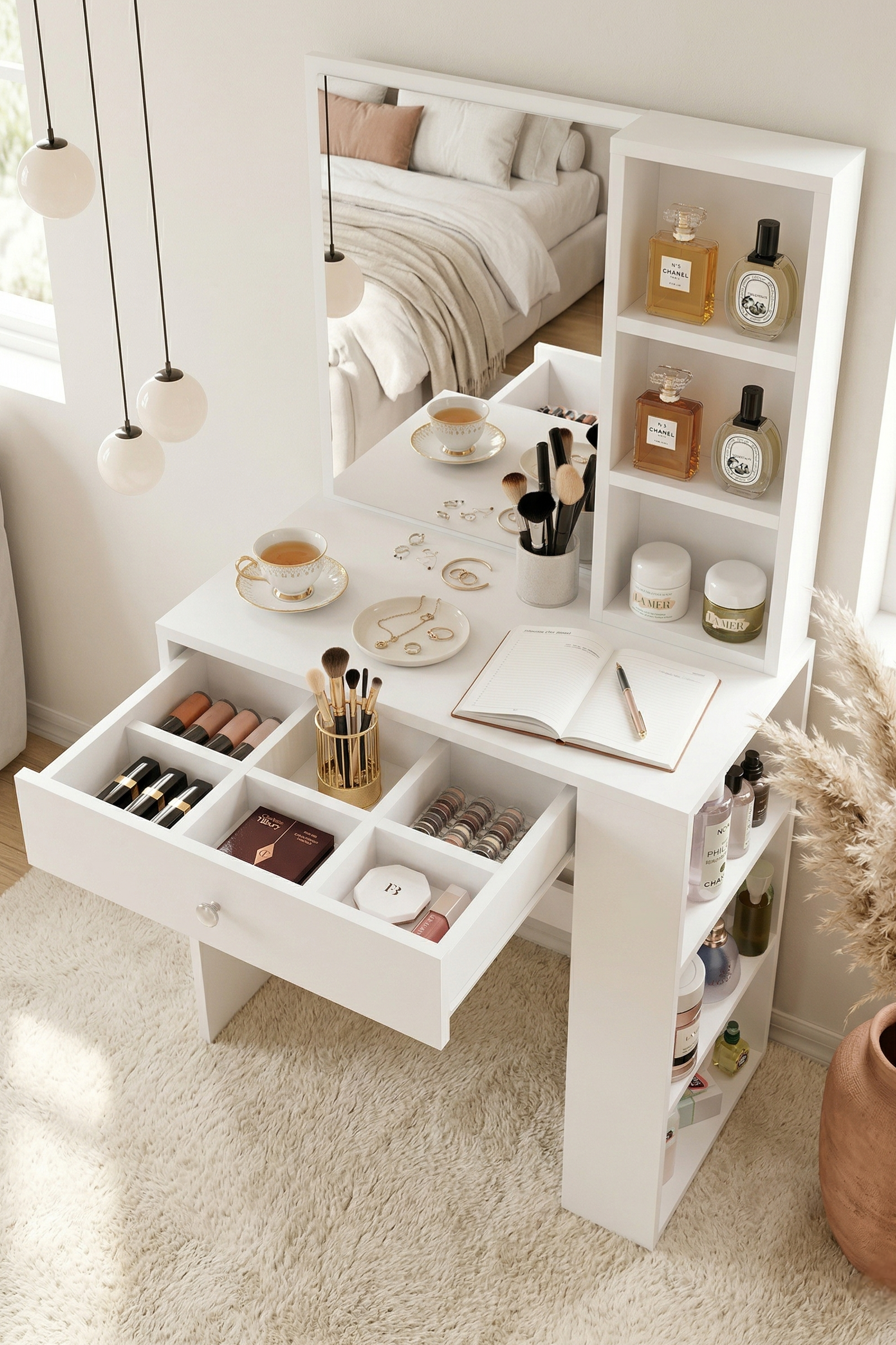 Monroe Makyaj Masası Çekmeceli Düzenleyici Raflı Beyaz
