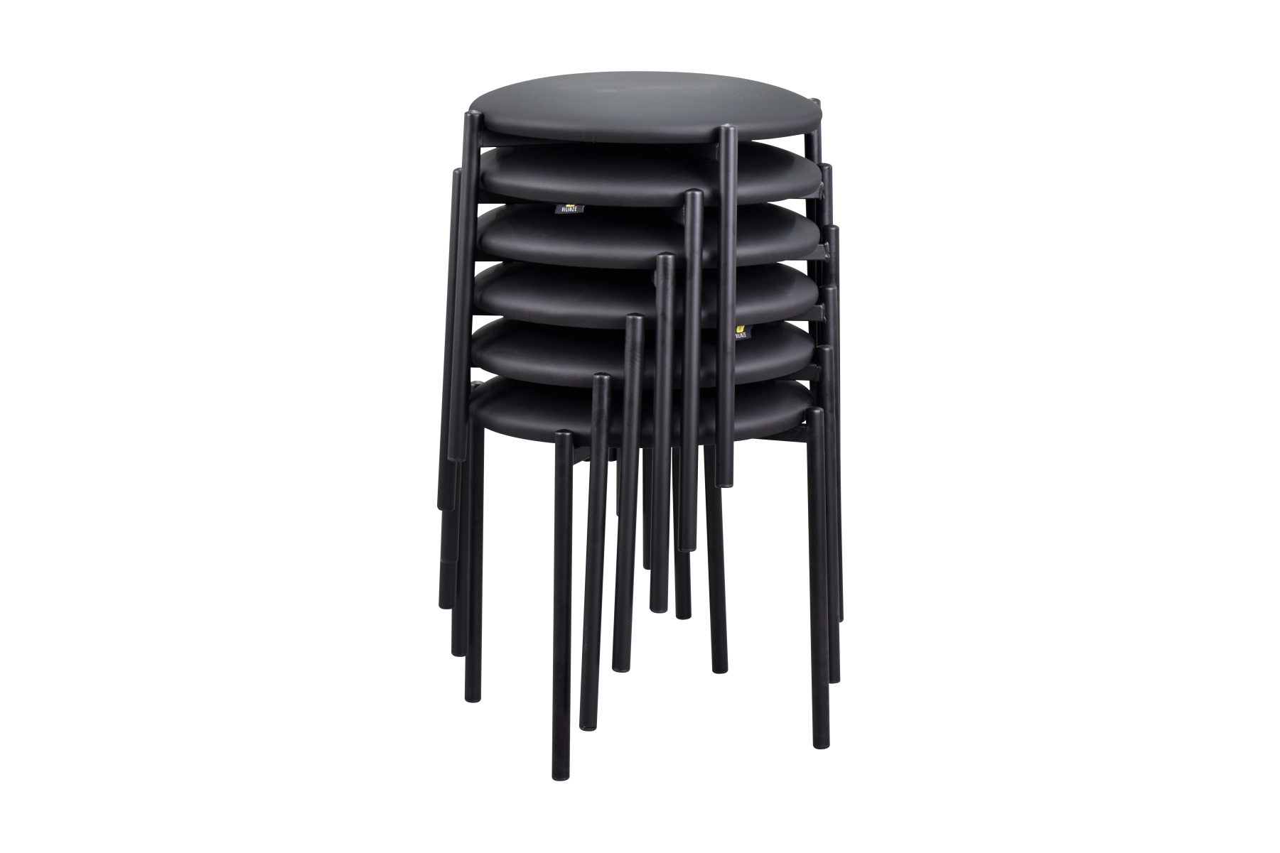 Nil Siyah Metal Ayak Deri İstiflenebilir Mutfak-Balkon Taburesi Siyah – 6 Adet