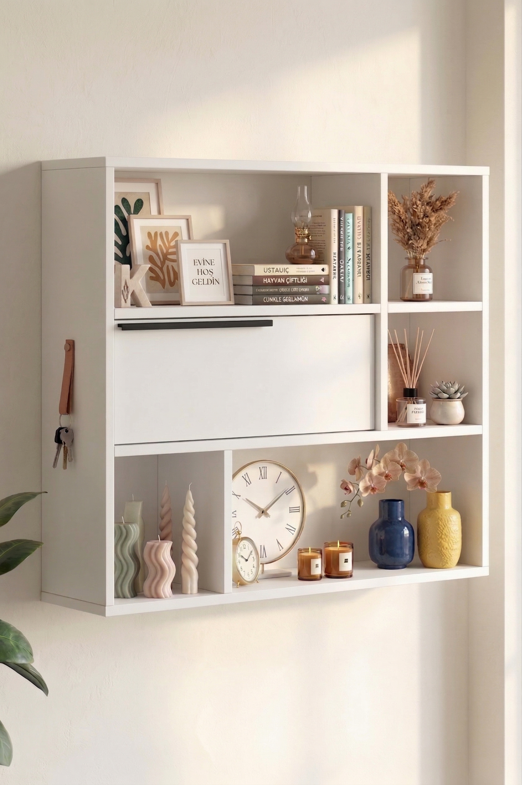 Ocean Duvar Rafı Kitaplık Kapaklı Beyaz