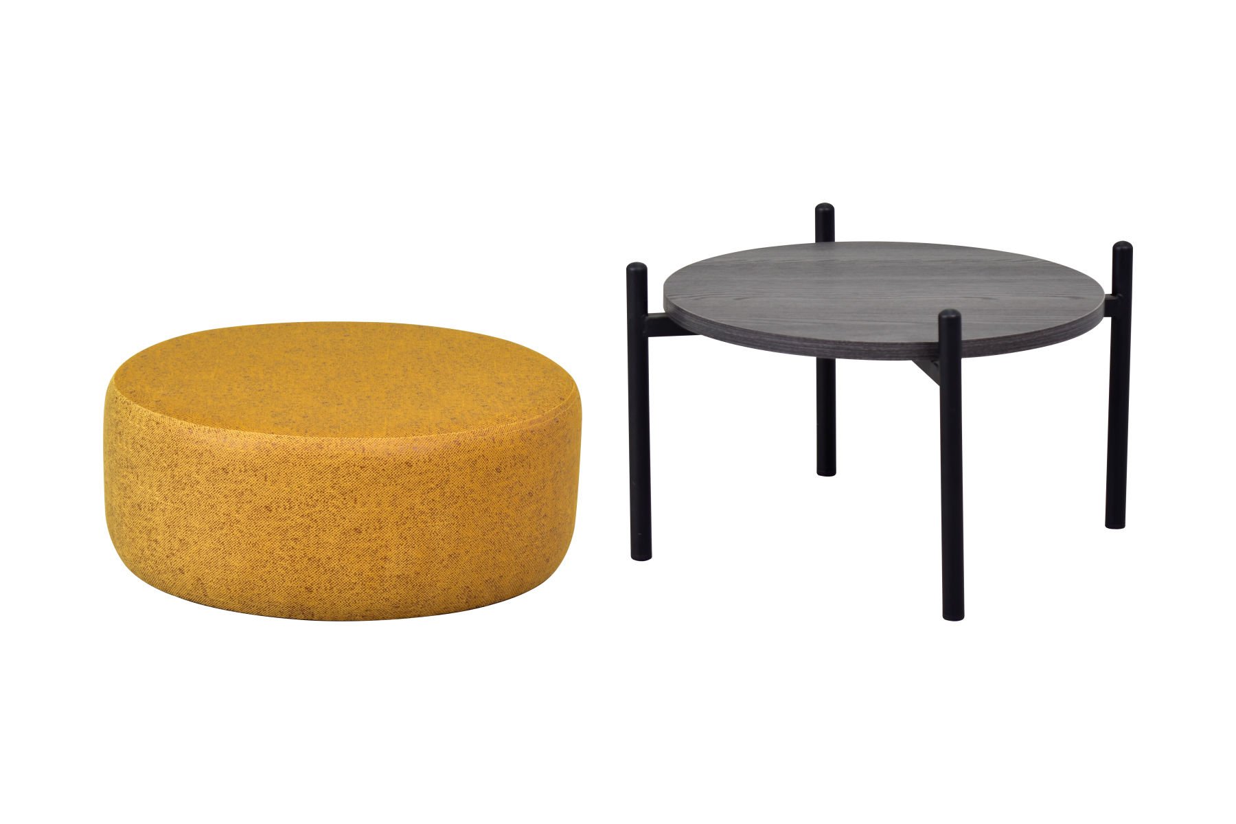 Otto Fonksiyonel Siyah Ayak Antrasit Sehpalı Yuvarlak Puf Sarı