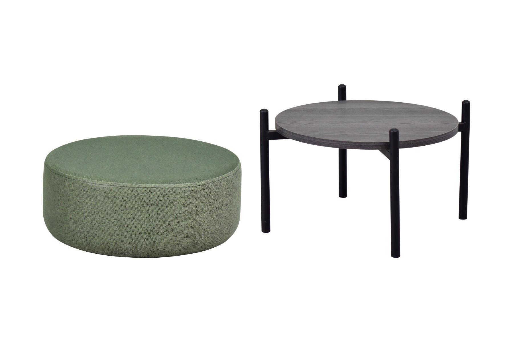 Otto Fonksiyonel Siyah Ayak Antrasit Sehpalı Yuvarlak Puf Yeşil