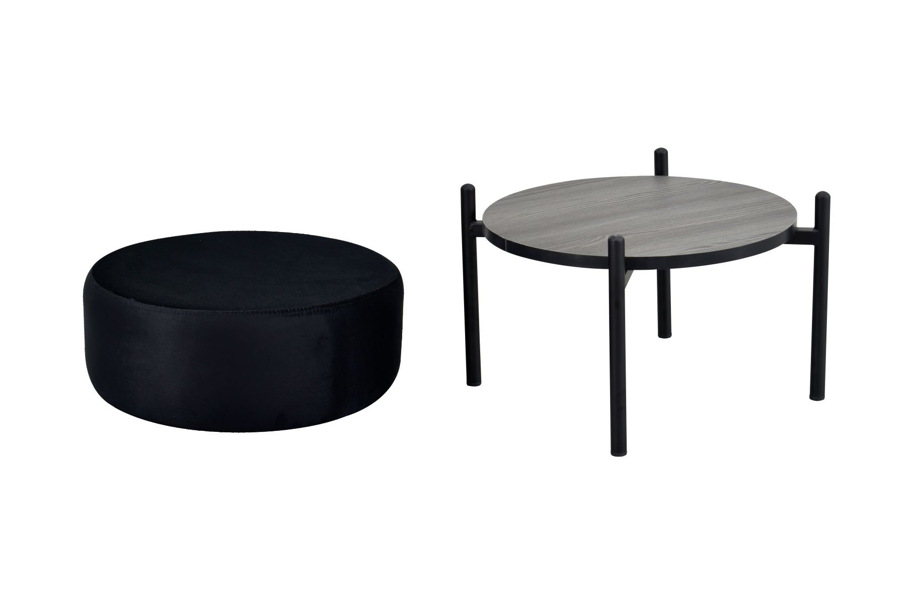 Otto Fonksiyonel Siyah Ayak Sehpalı Yuvarlak Siyah Puf Antrasit
