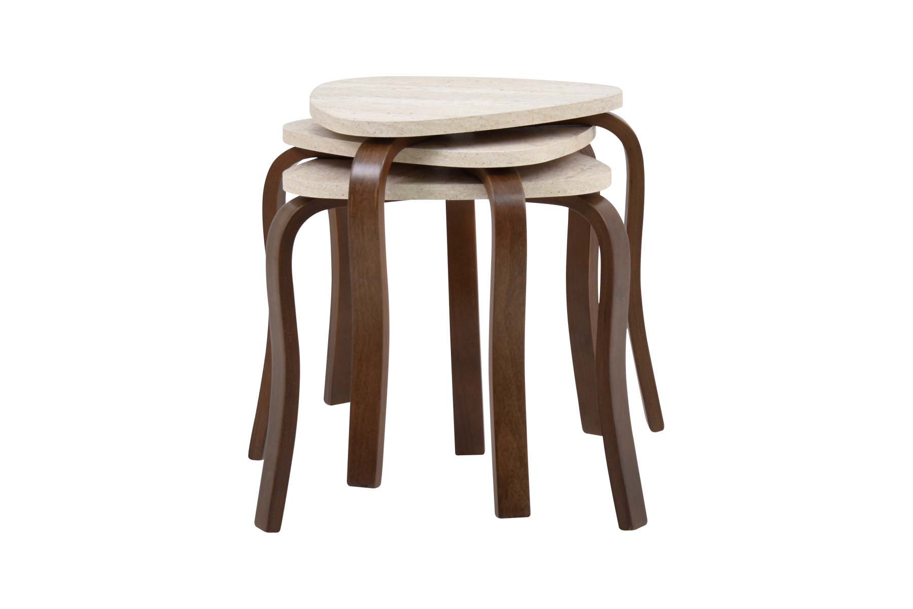 Papatya Kestane Ayak Ahşap Çok Amaçlı Zigon Tabure Traverten – 3 Adet
