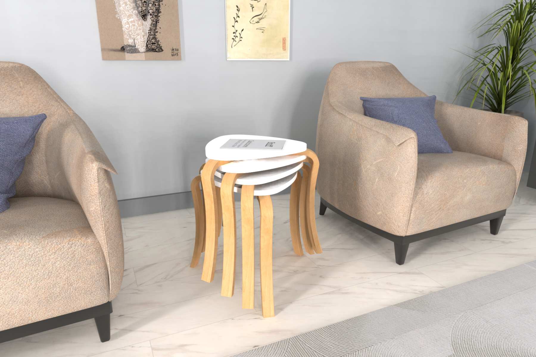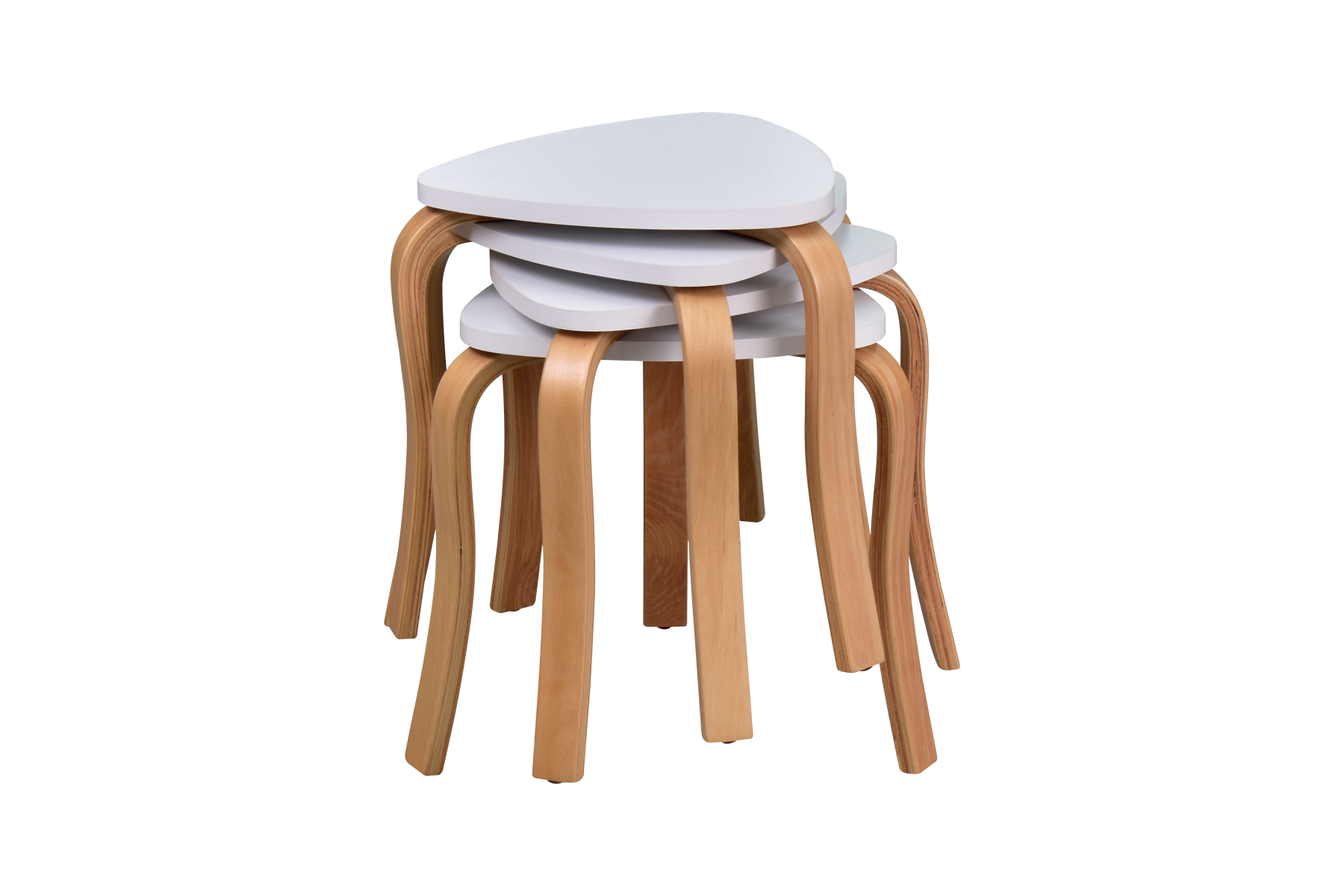 Papatya Naturel Ayak Ahşap Çok Amaçlı Zigon Tabure Beyaz – 4 Adet