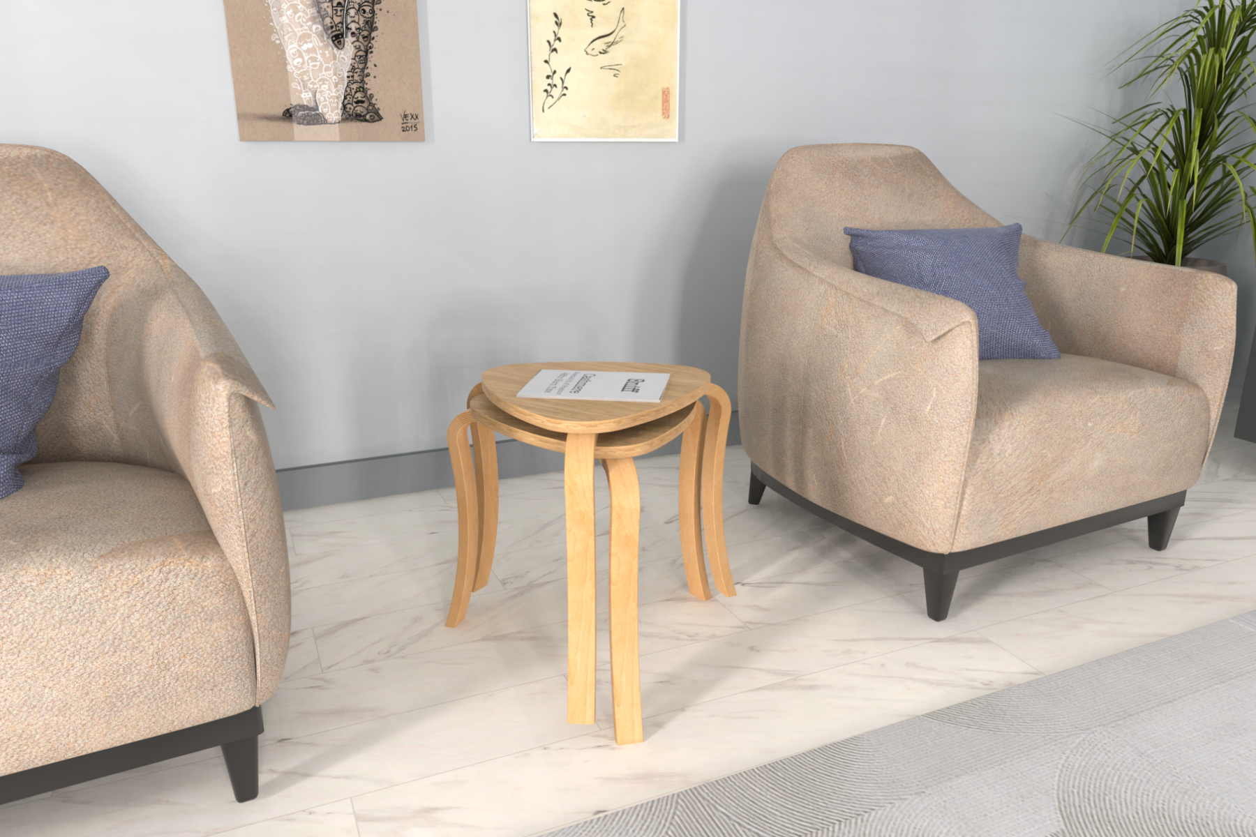 Papatya Naturel Ayak Ahşap Çok Amaçlı Zigon Tabure Naturel – 2 Adet