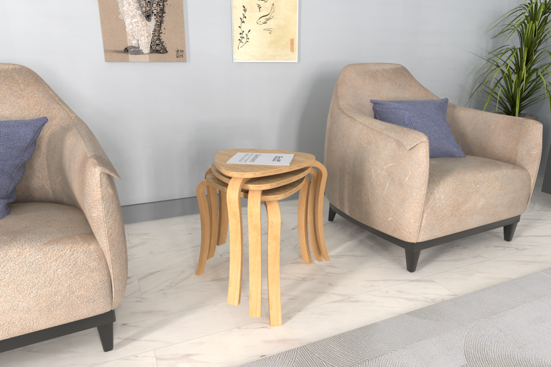 Papatya Naturel Ayak Ahşap Çok Amaçlı Zigon Tabure Naturel – 3 Adet