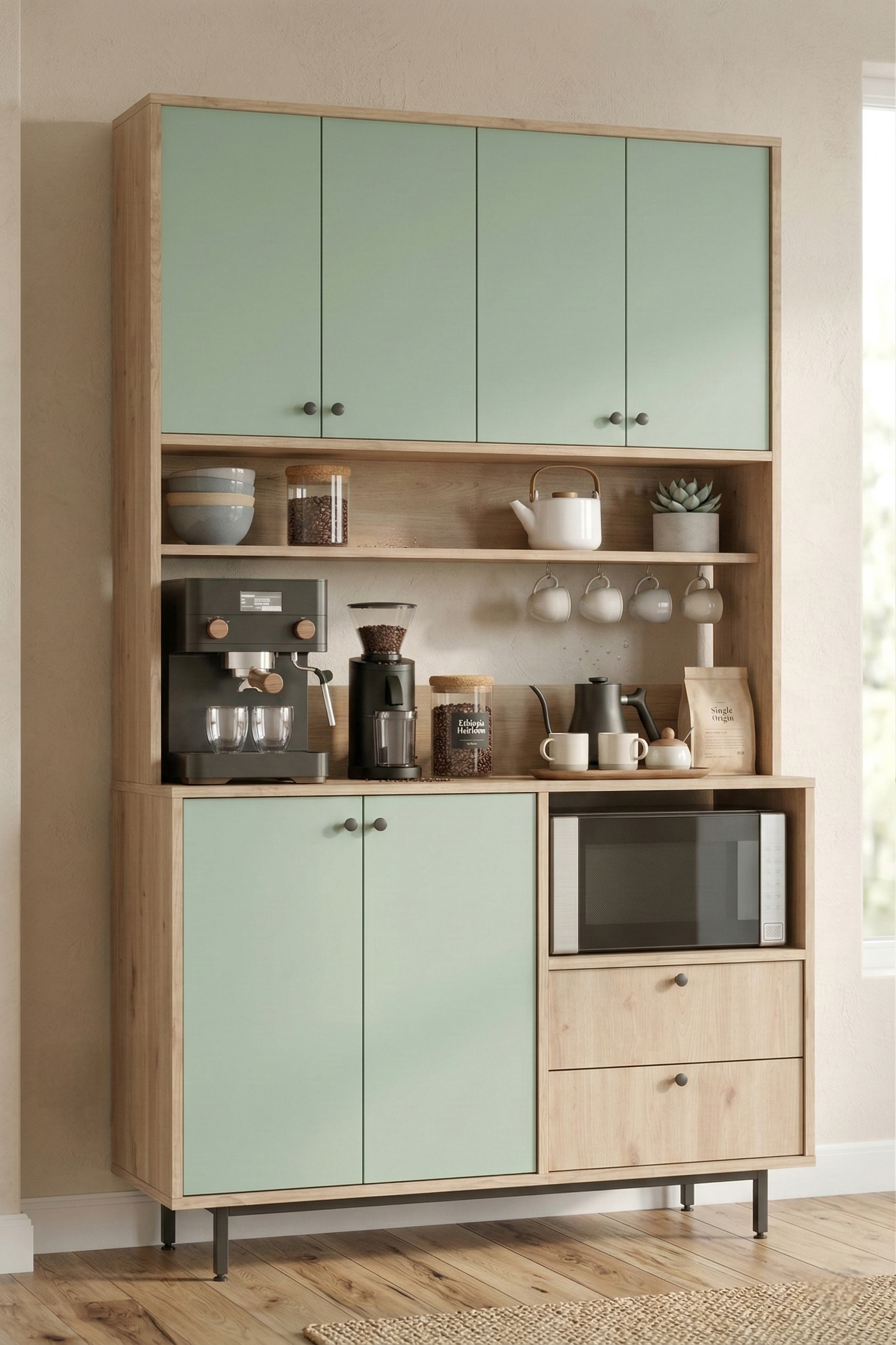 Royce Serisi Kahve Köşesi Çok Amaçlı Dolap Mutfak Dolabı Sepet-Ihlamur Yeşili