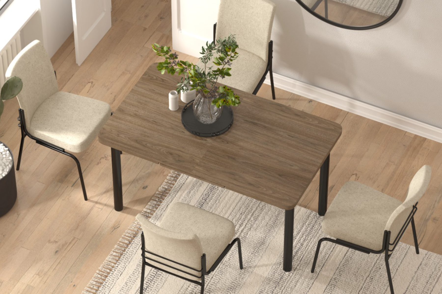Sahra Sandalye Elmas Mutfak Masası Takımı – 80×120 cm Kestane