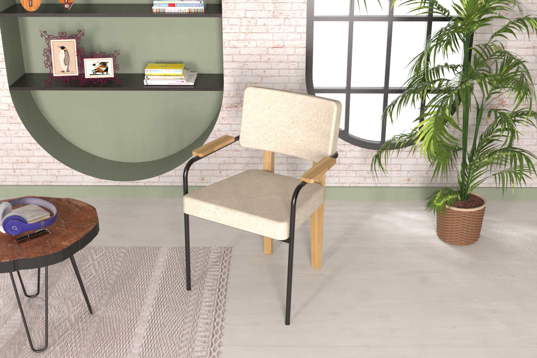 Saray Ahşap-Metal Siyah Ayak Sigma Sandalye Naturel – Beyaz