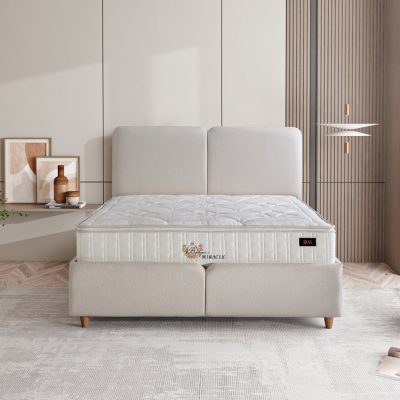 Yatağın iç yapısında yer alan Smart Spring yay sistemi, vücut ağırlığının yatak yüzeyine daha dengeli yayılmasına imkân tanır. Bu sayede yatakta oluşan basınç noktaları azalır, yatış sırasında daha kontrollü bir his verir. Yumuşak karşılama ile sert destek arasındaki denge, gece boyunca konforun korunmasına yardımcı olur.