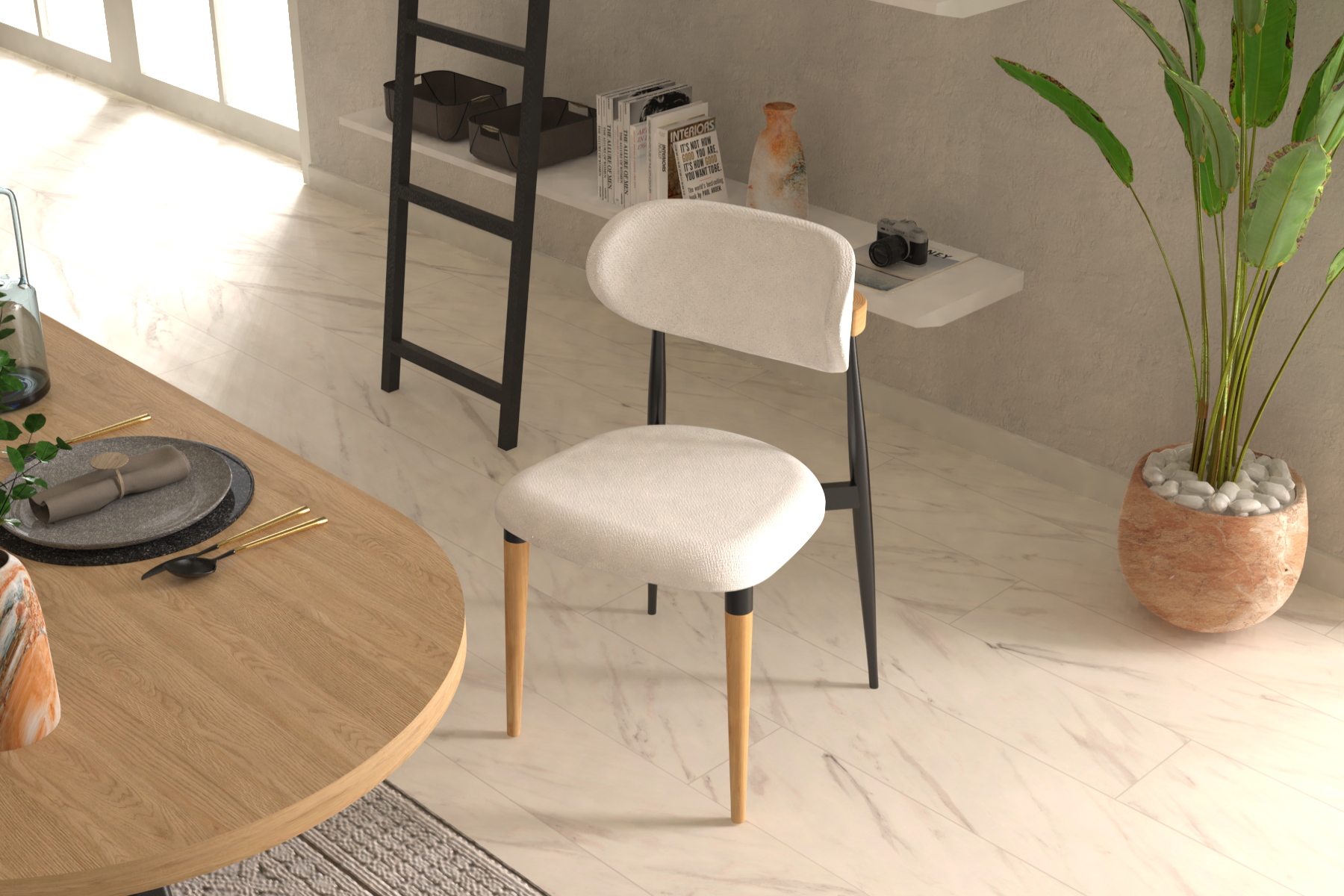 Venüs Ahşap-Metal Siyah Ayak Teddy Sandalye Siyah – Teddy Beyaz