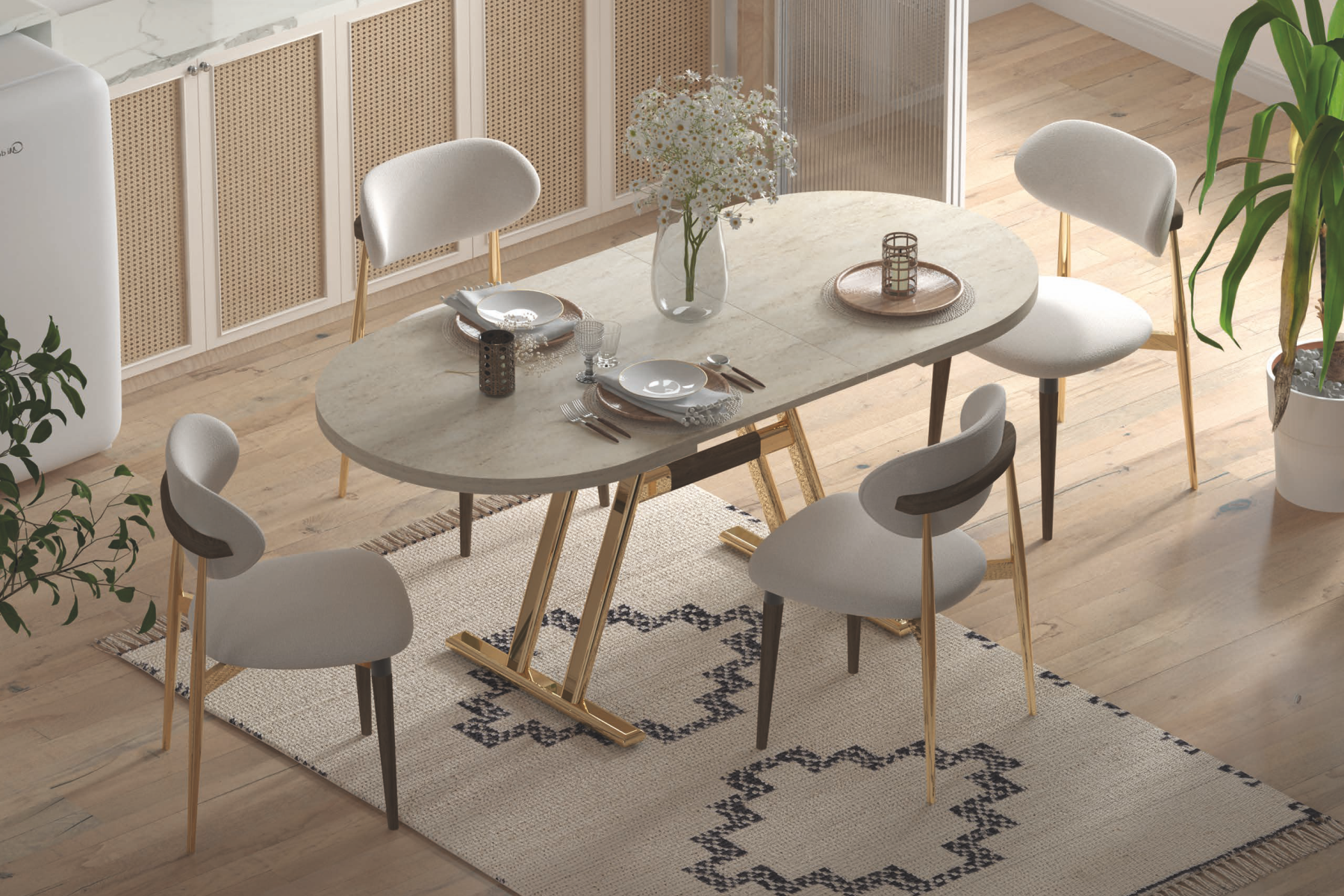 Venüs Sandalye Afyon Gold Mutfak Masası Takımı – 80×140 cm
