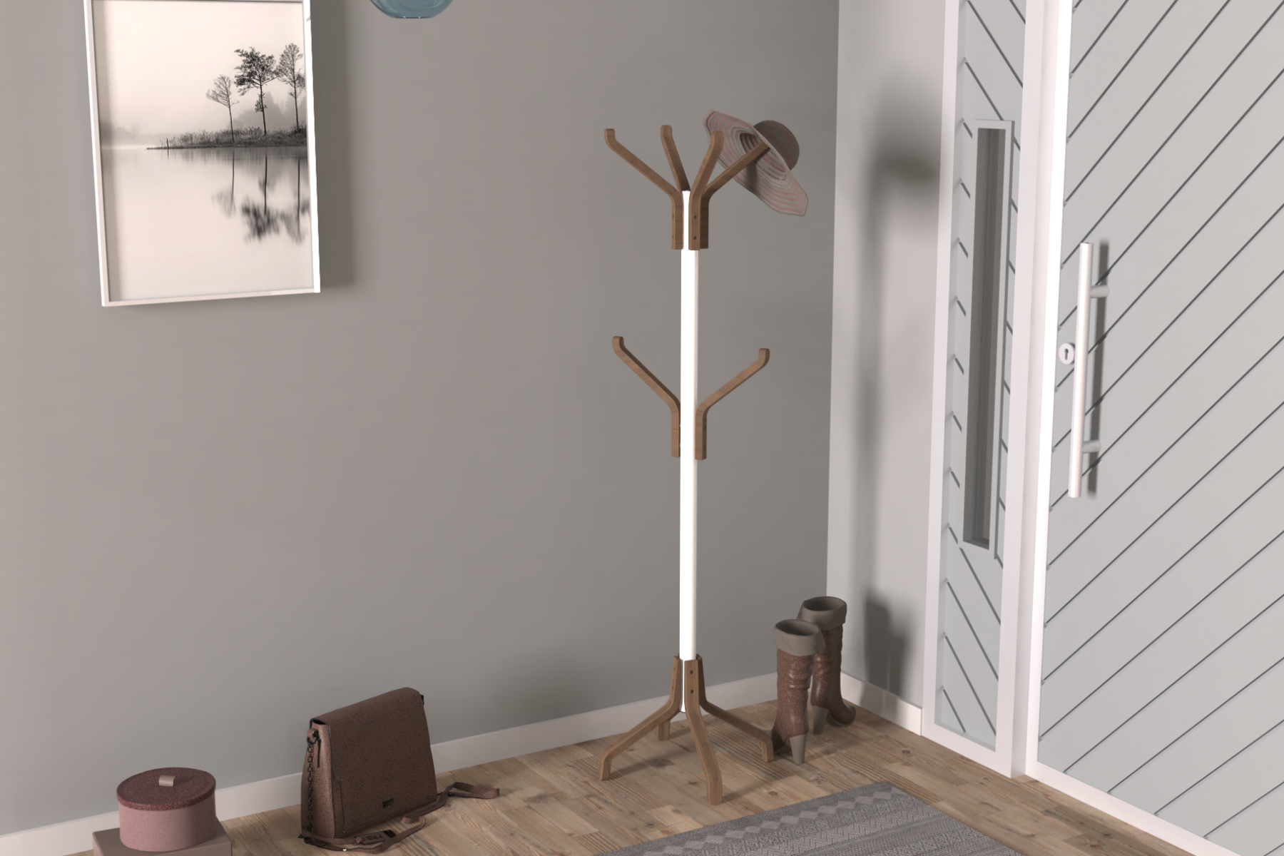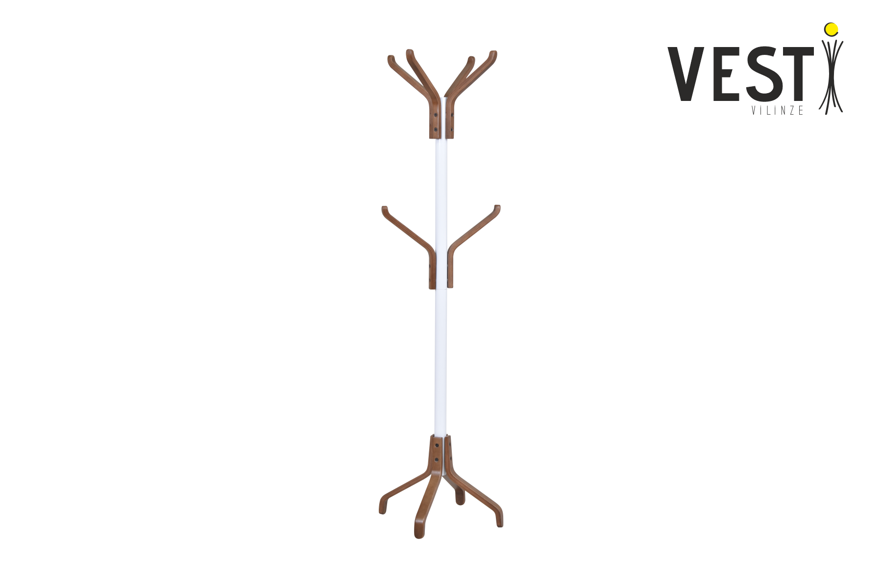 Vesti Ahşap Ayaklı Beyaz Metal Portmanto Elbise Askılığı Kestane – 6 Kollu