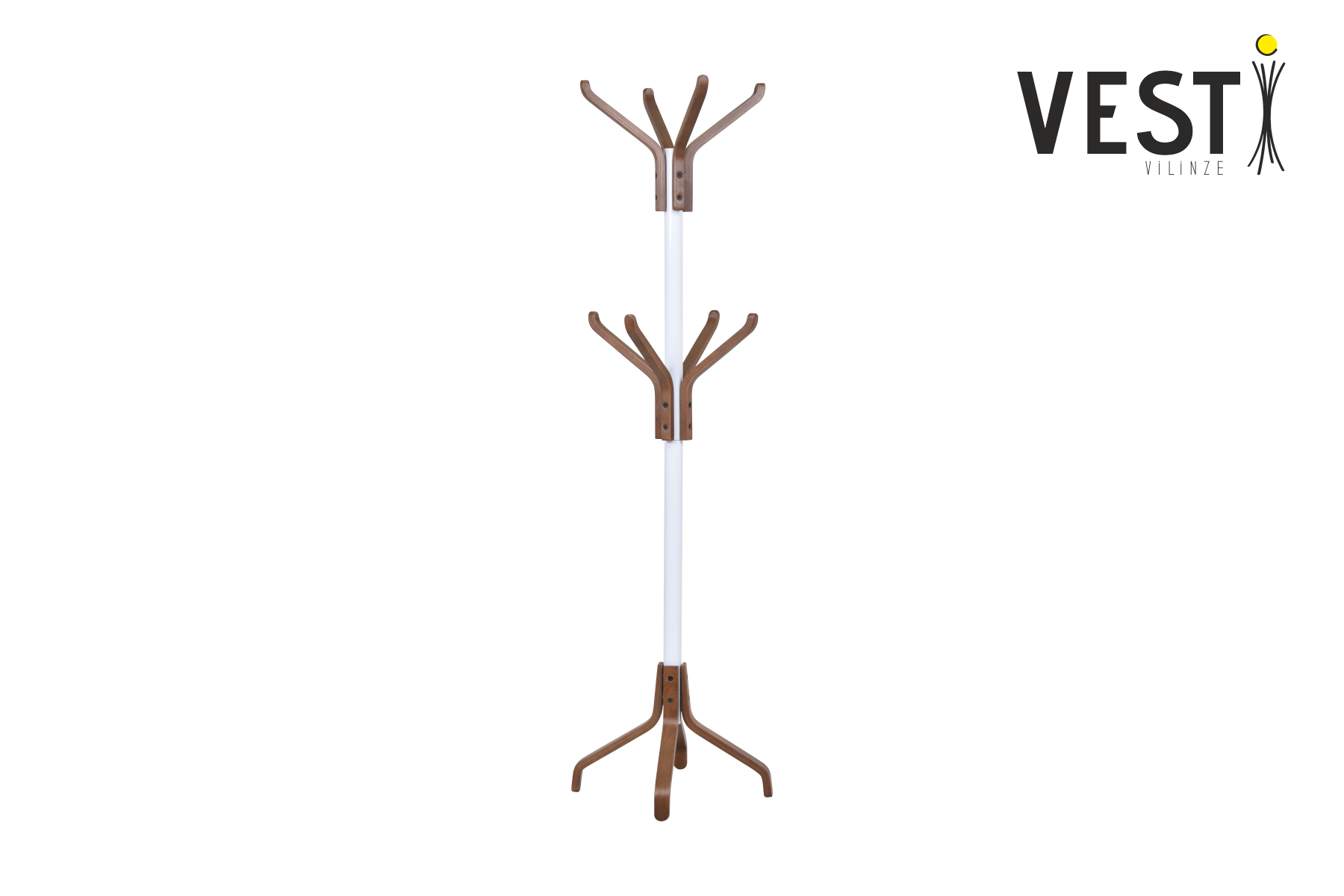 Vesti Ahşap Ayaklı Beyaz Metal Portmanto Elbise Askılığı Kestane – 8 Kollu