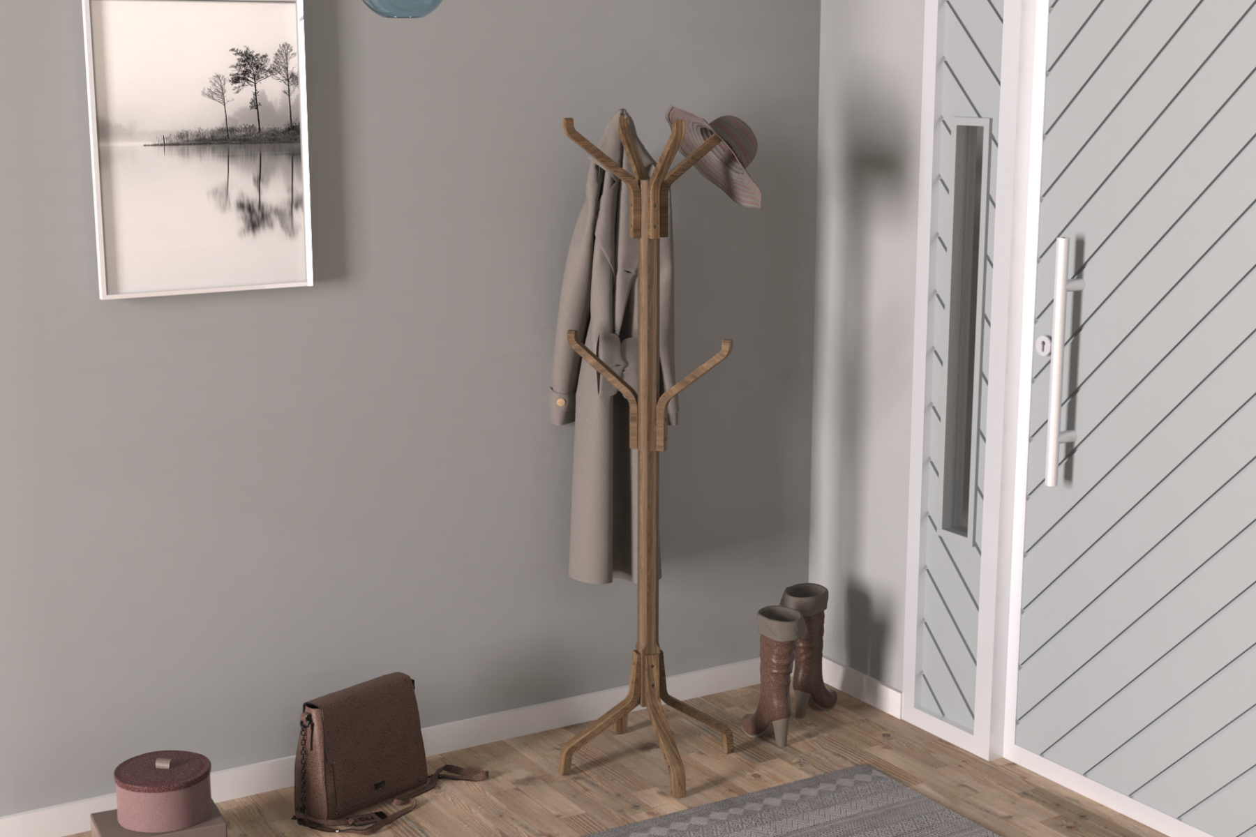 Vesti Ahşap Ayaklı Portmanto Elbise Askılığı Kestane – 6 Kollu